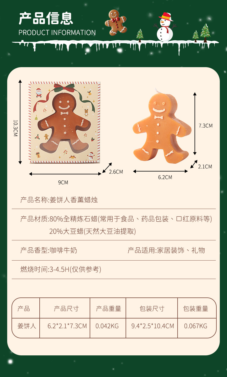 「咖啡牛奶香!圣诞礼物」姜饼人圣诞节日香薰蜡烛礼物香味造型蜡圣诞节伴手礼居家日用香氛蜡烛