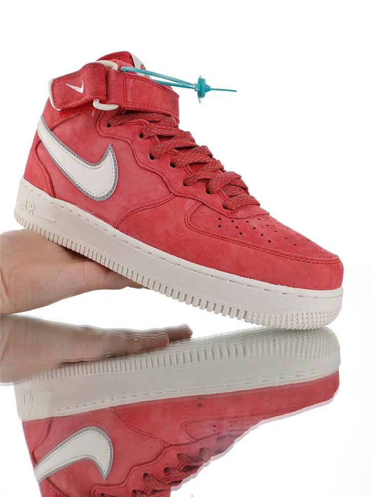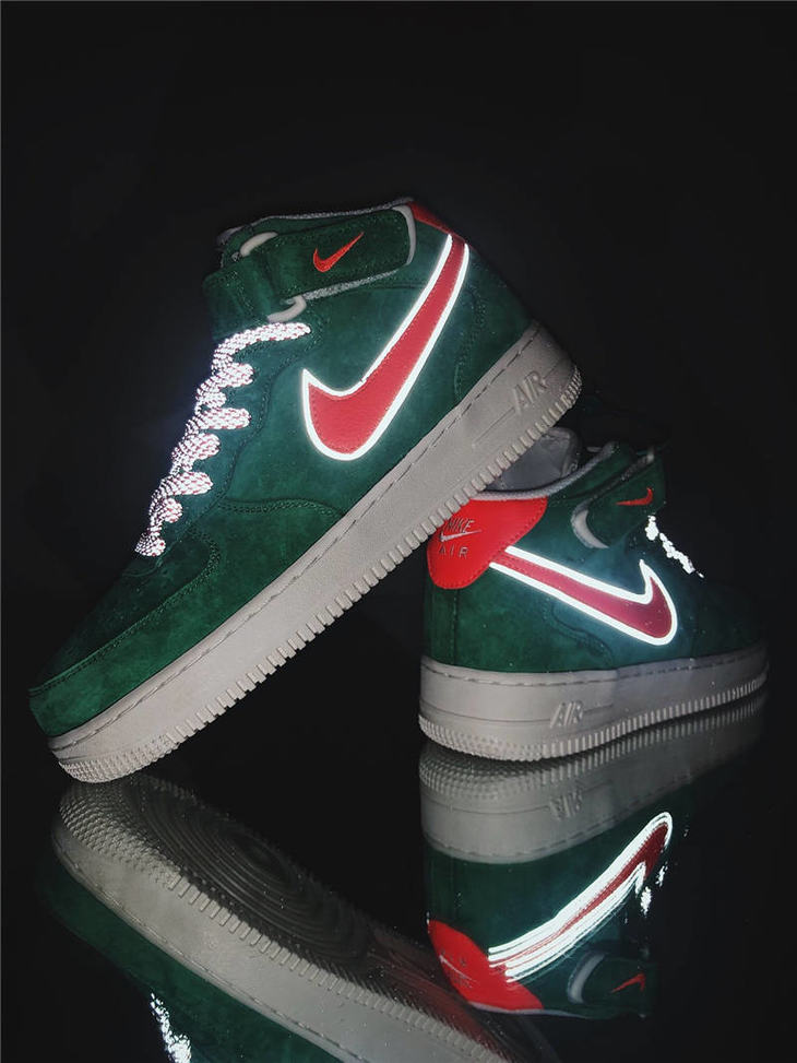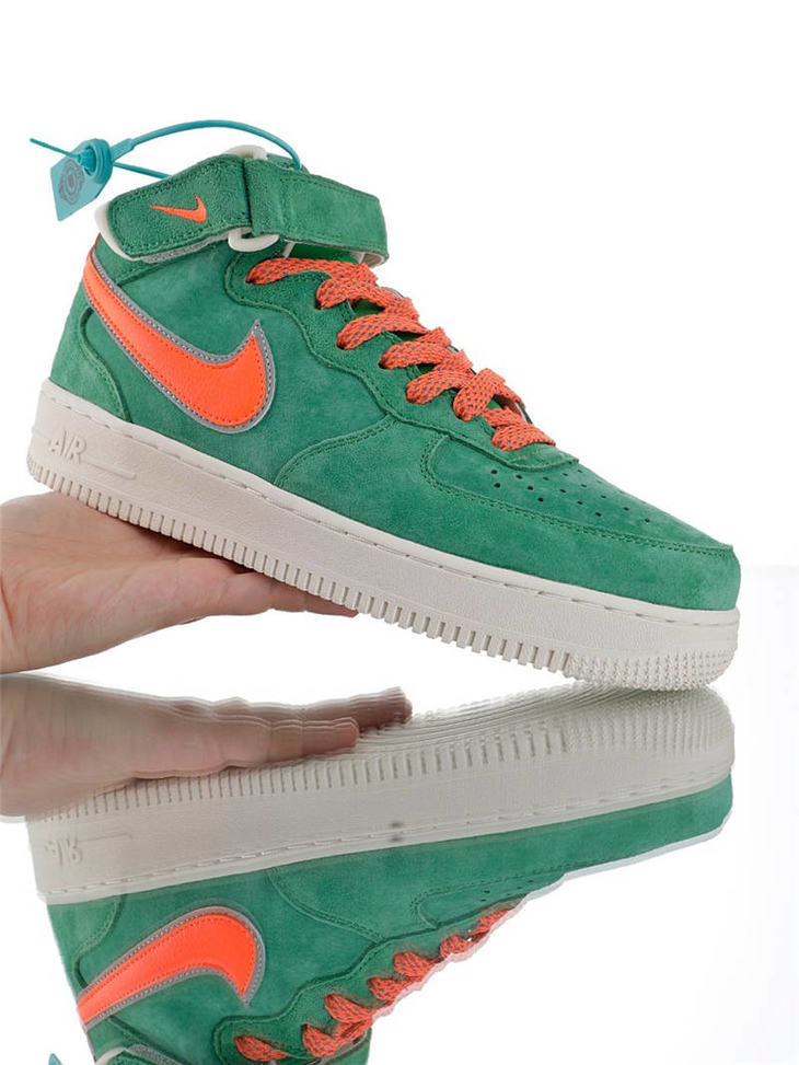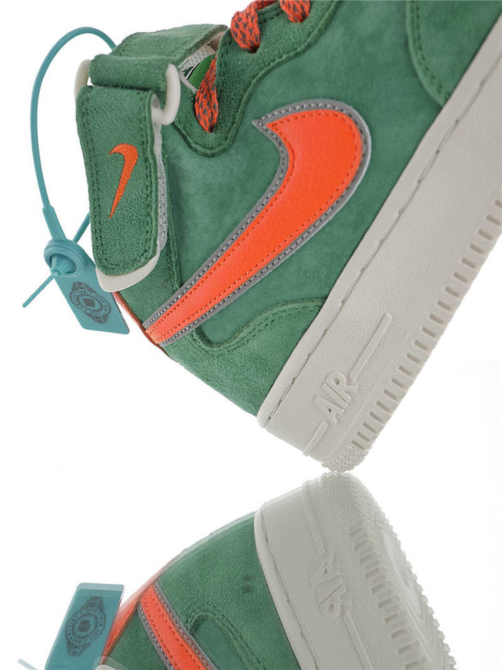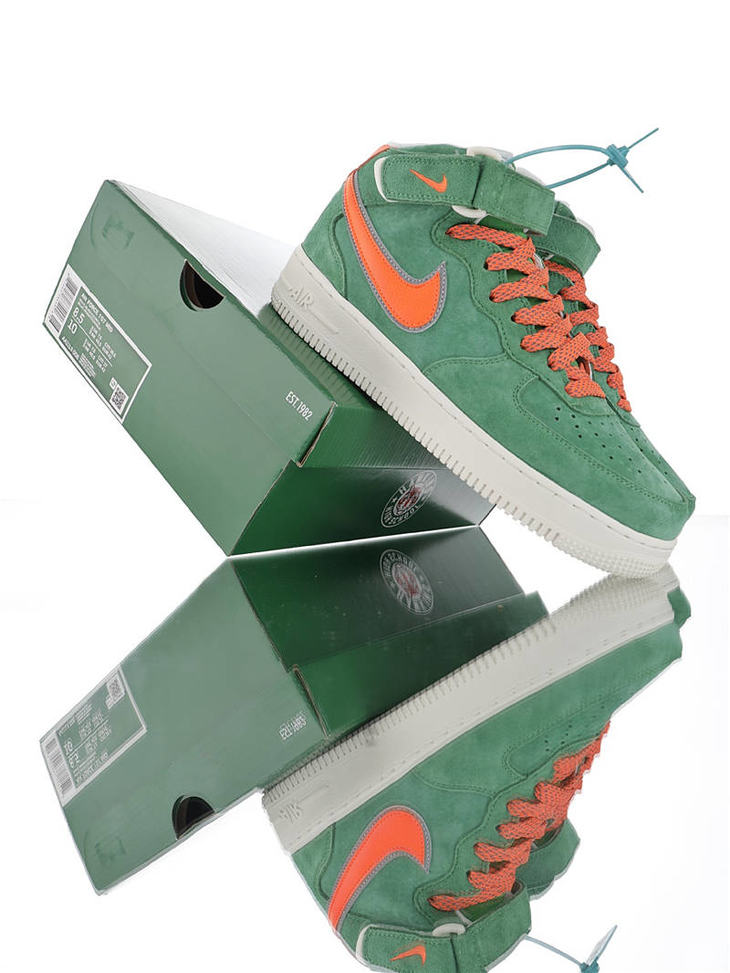 耐克Nike Air Force 1 '07 Mid 怪奇物语限定 原模具开发打造 台产猪巴革鞋面材质 内置全掌air sole气垫 空军一号中帮运动板鞋 麂皮深绿桔红3M 麂皮酒红白3M