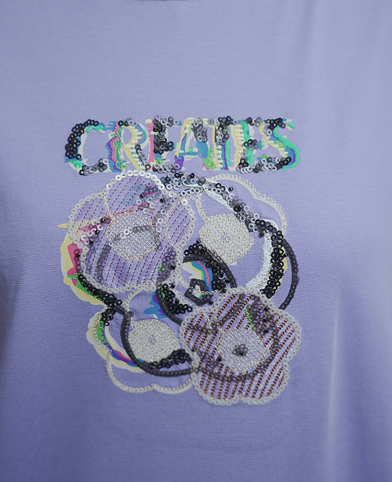 司歌收腰绣花收腰圆领T恤短袖T93G2133