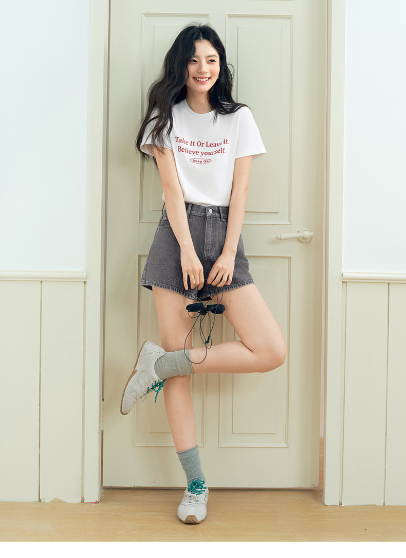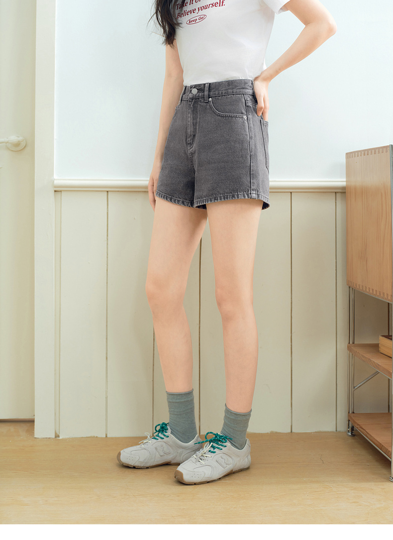 【严选】诗凡黎浅灰牛仔短裤2025年春新款高腰显瘦设计感时尚百搭直筒裤子7G3150041