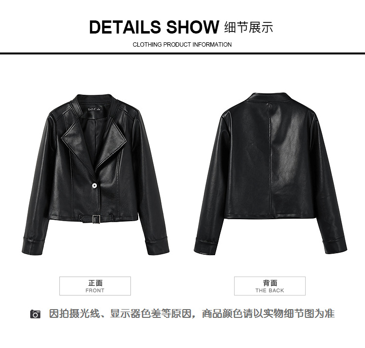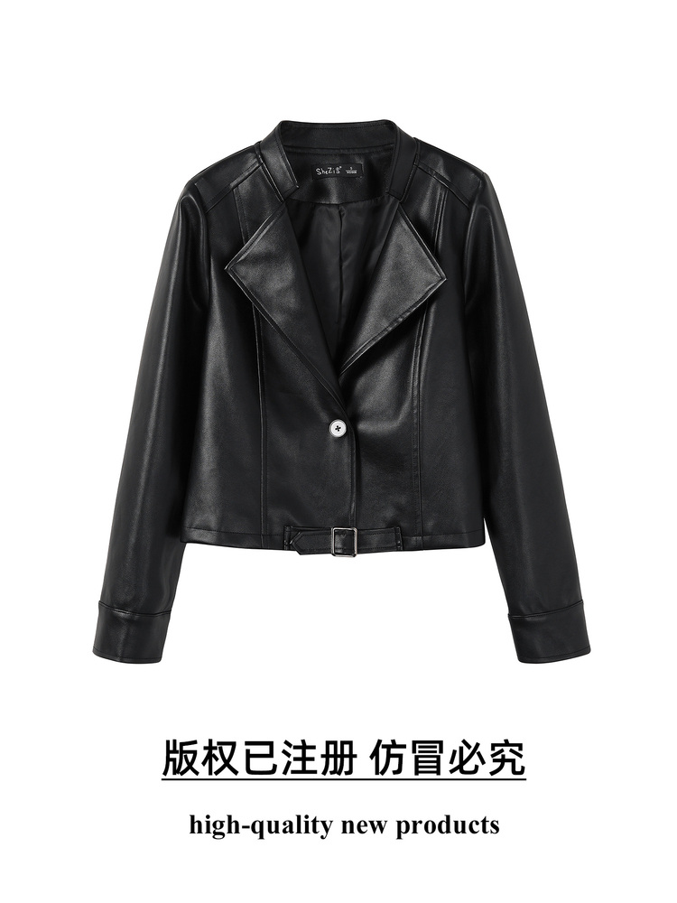 奢姿大码女装2025秋季时尚翻领皮衣胖妹妹个性简约百搭短款外套9953370352