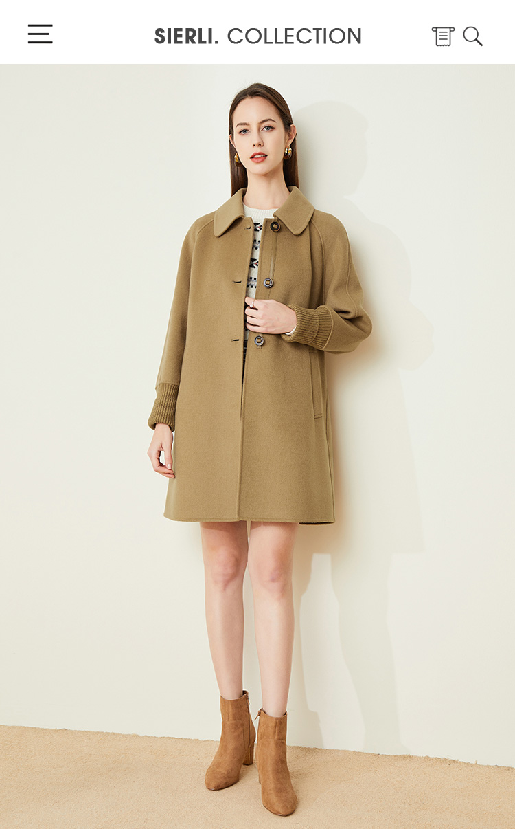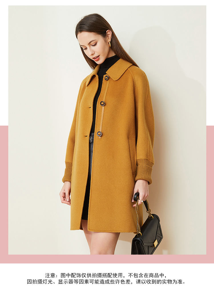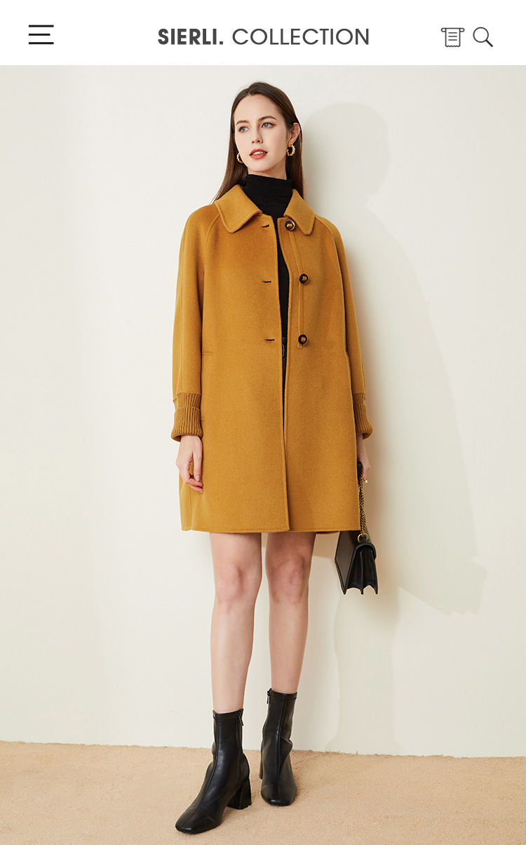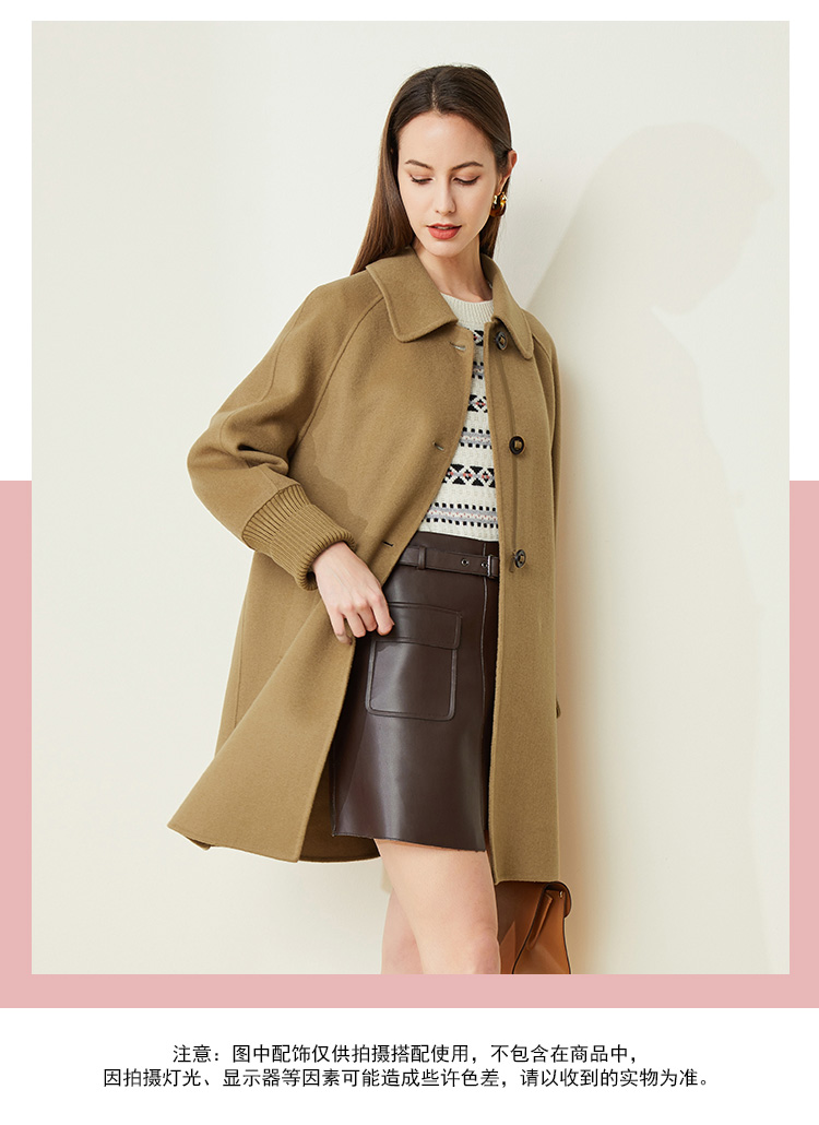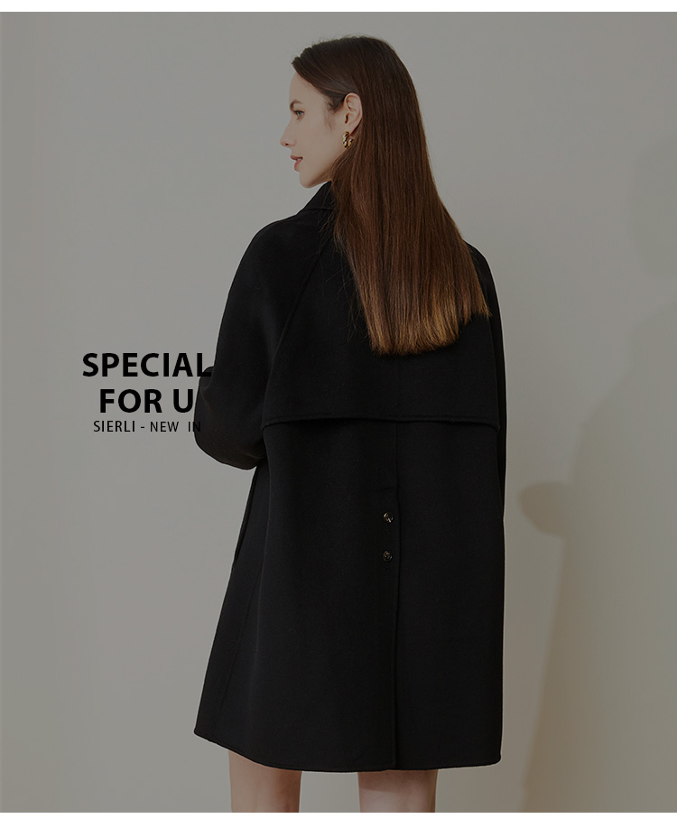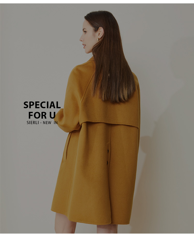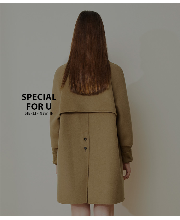 LH9J3斯尔丽2021瑟俪秋冬新款休闲直筒通勤外套针织袖口双面呢中长大衣
