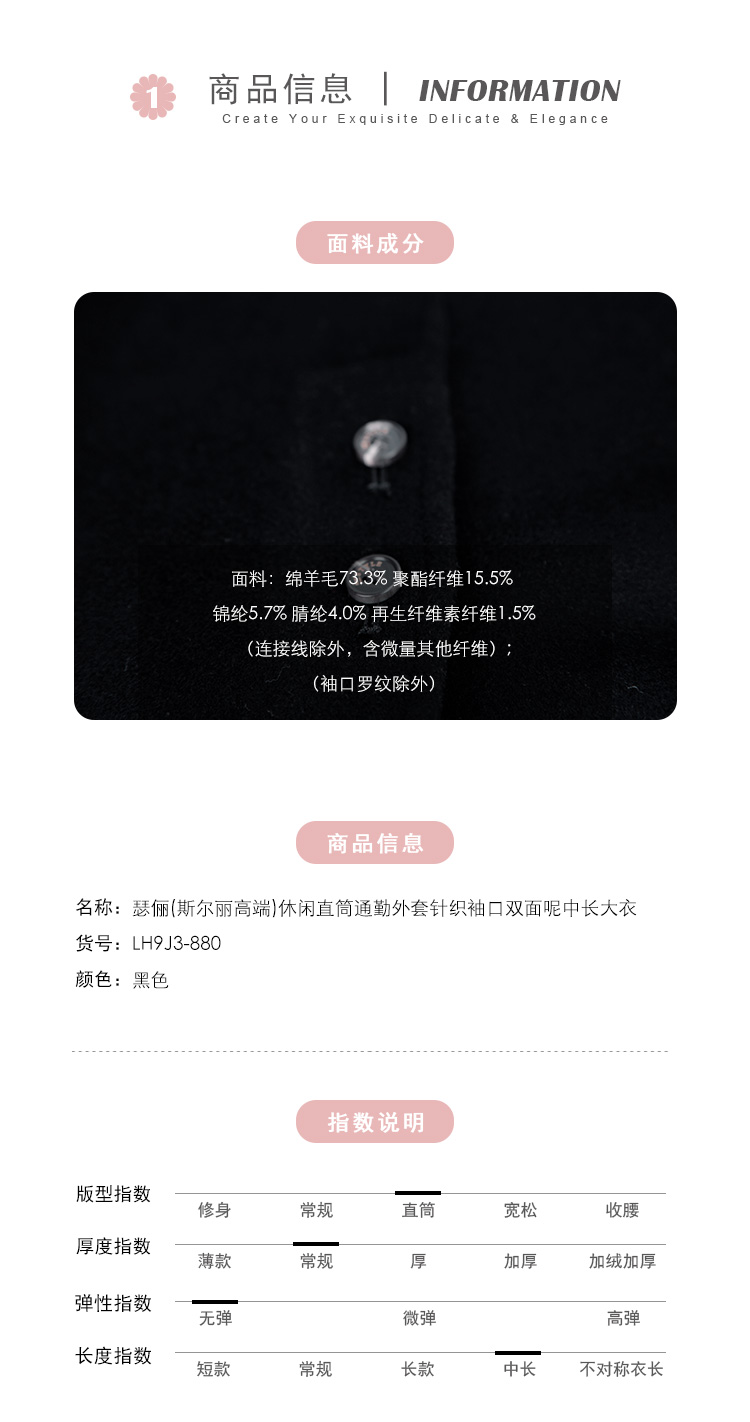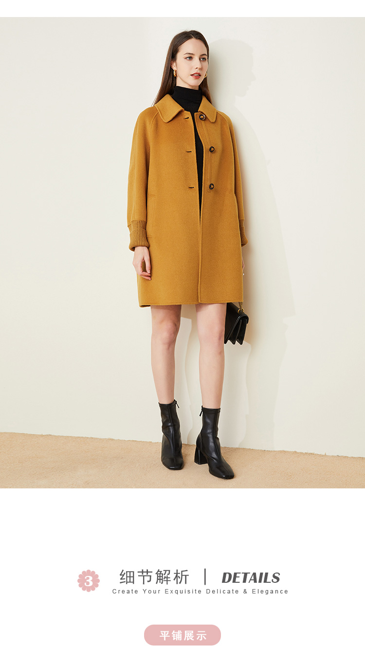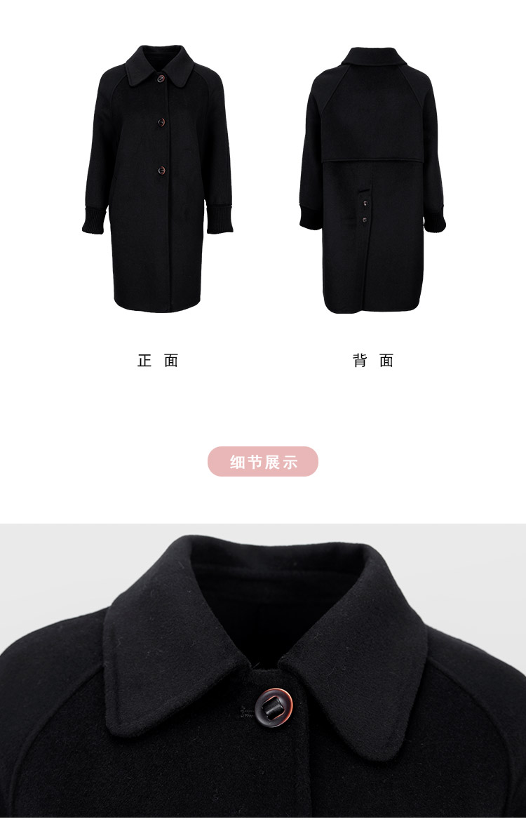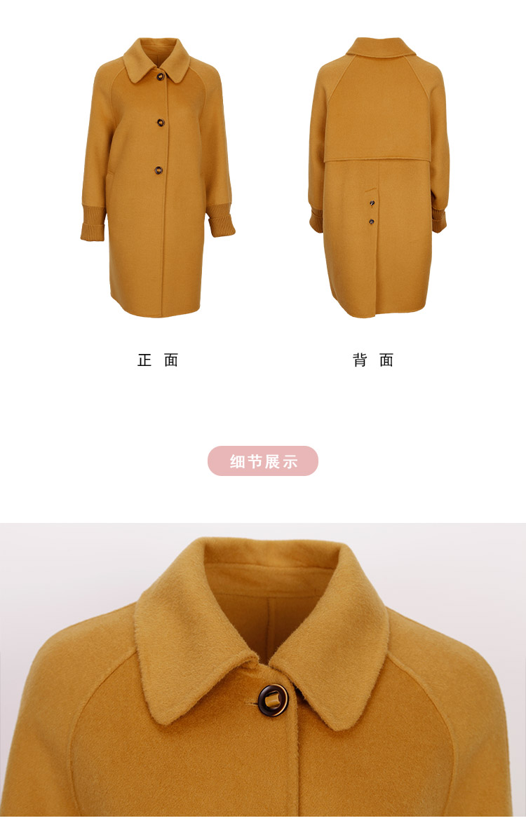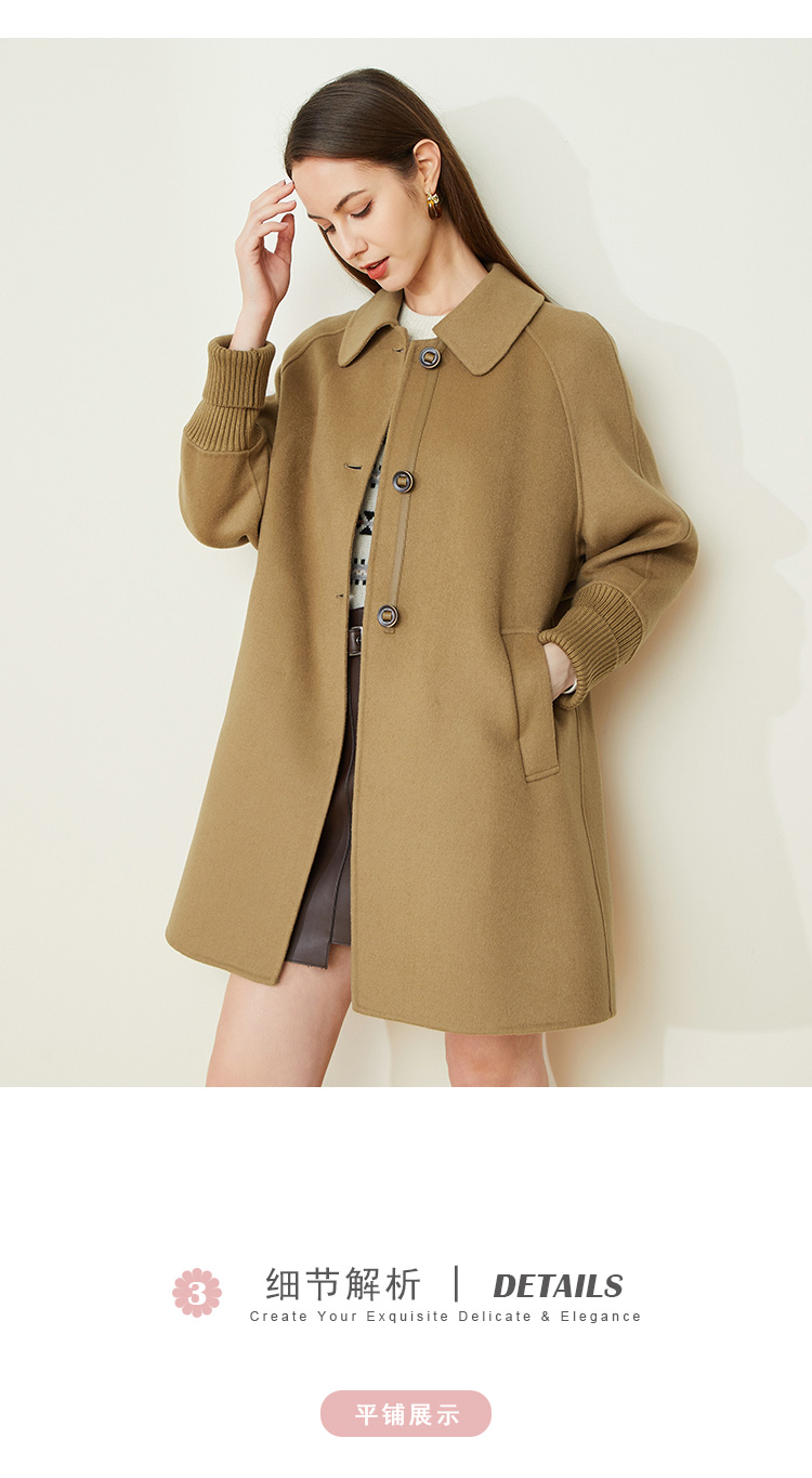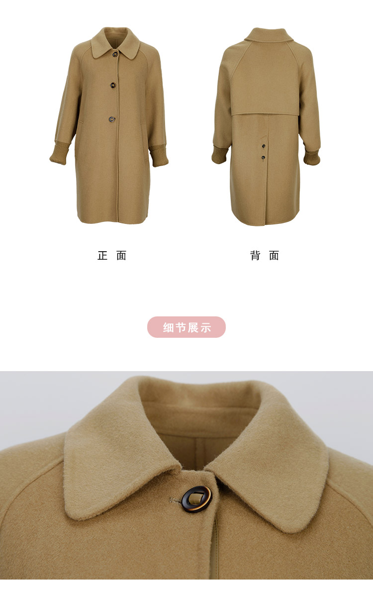 LH9J3斯尔丽2021瑟俪秋冬新款休闲直筒通勤外套针织袖口双面呢中长大衣
