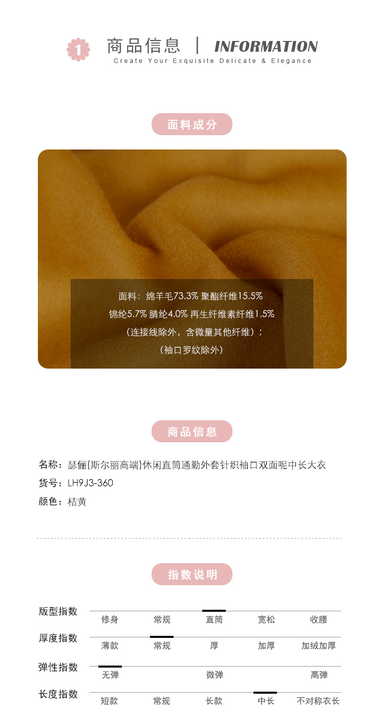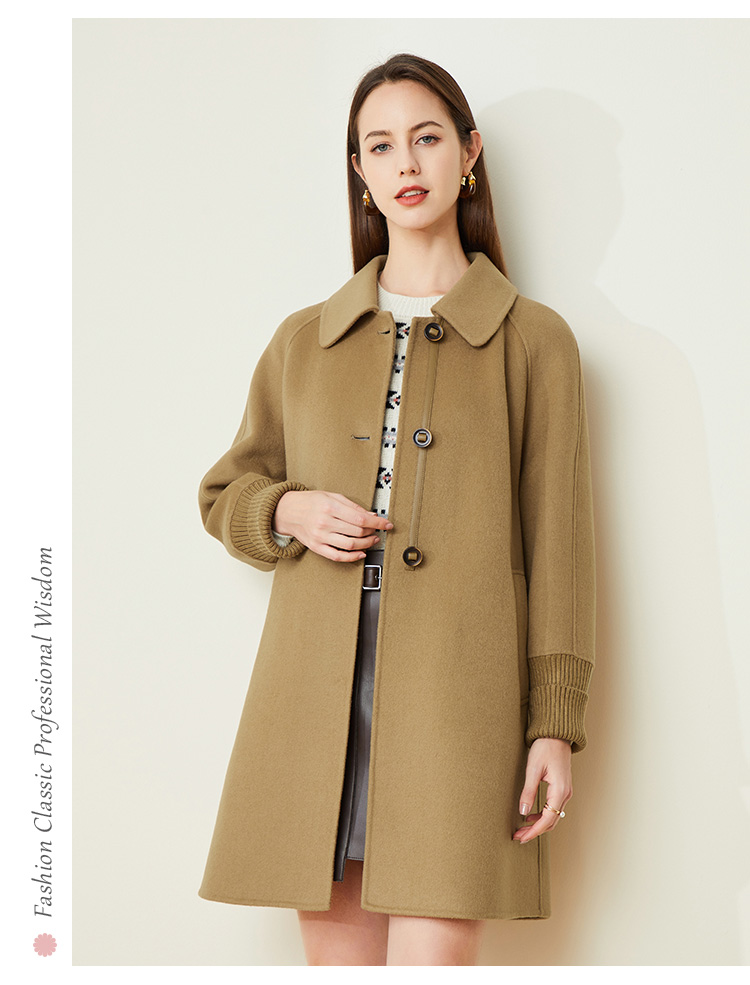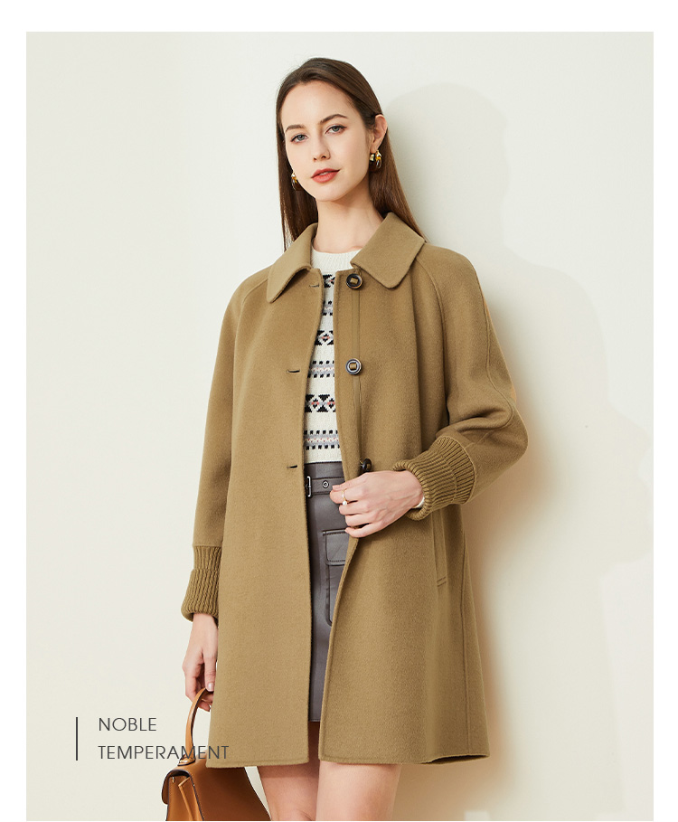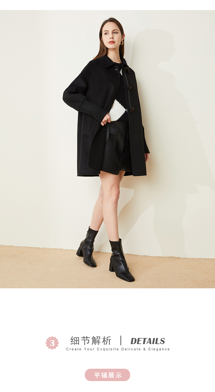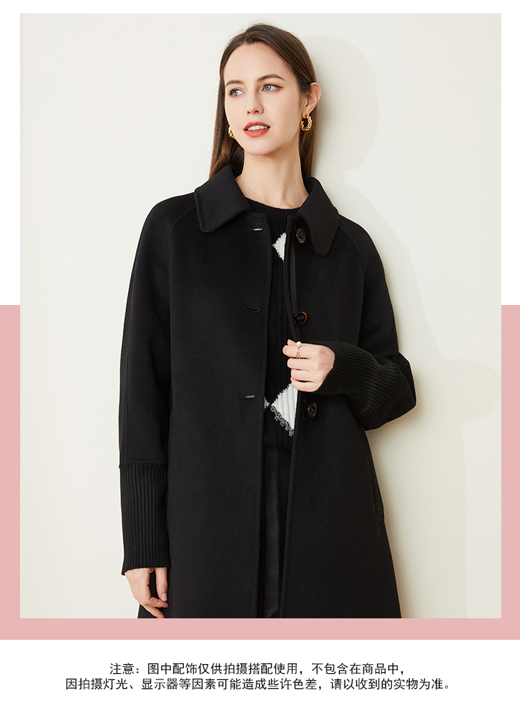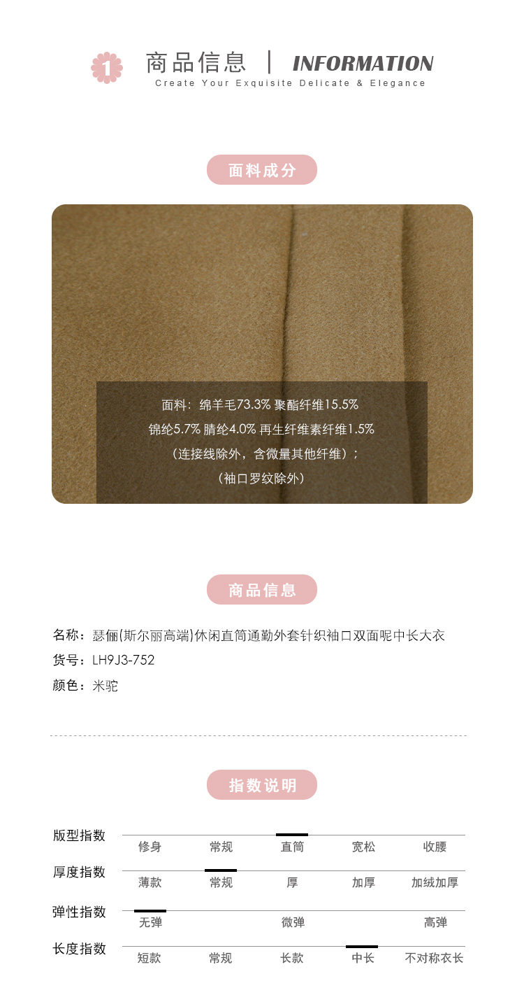 LH9J3斯尔丽2021瑟俪秋冬新款休闲直筒通勤外套针织袖口双面呢中长大衣