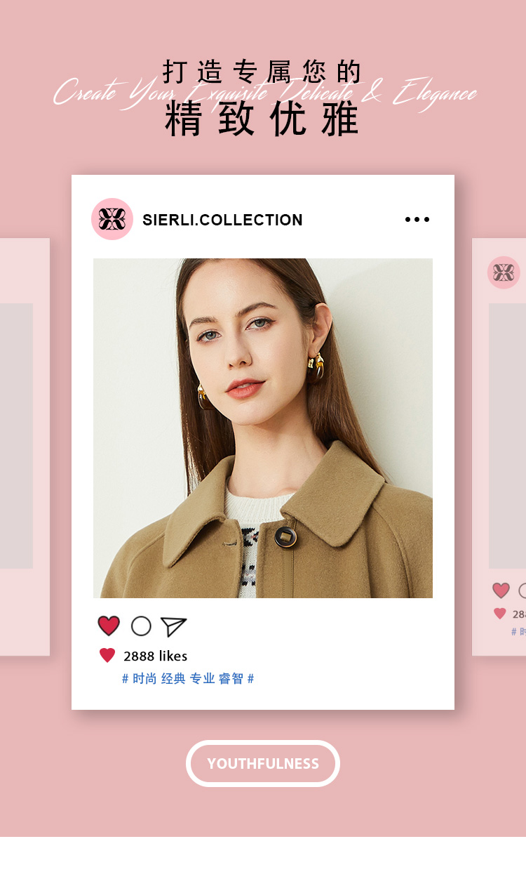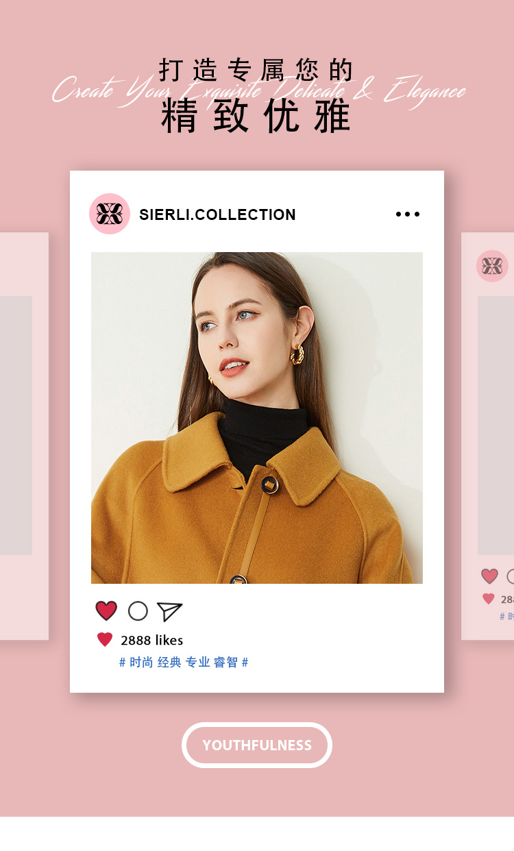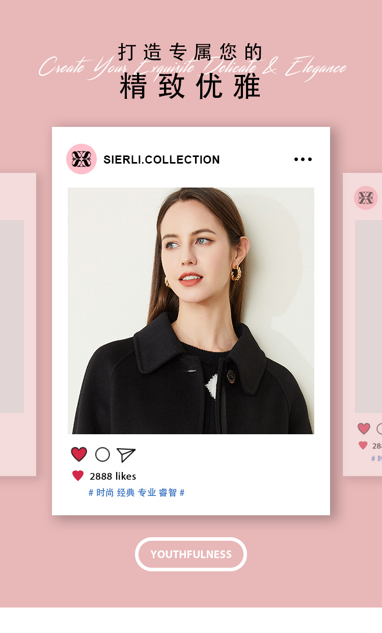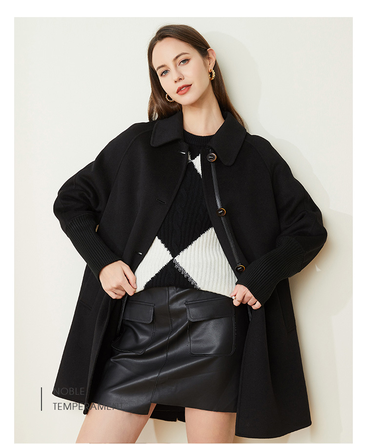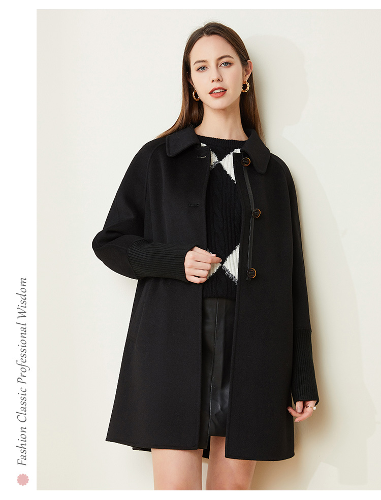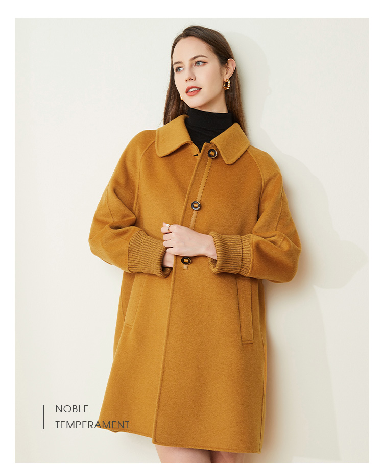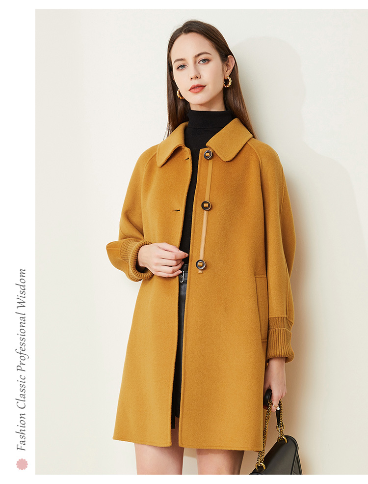 LH9J3斯尔丽2021瑟俪秋冬新款休闲直筒通勤外套针织袖口双面呢中长大衣