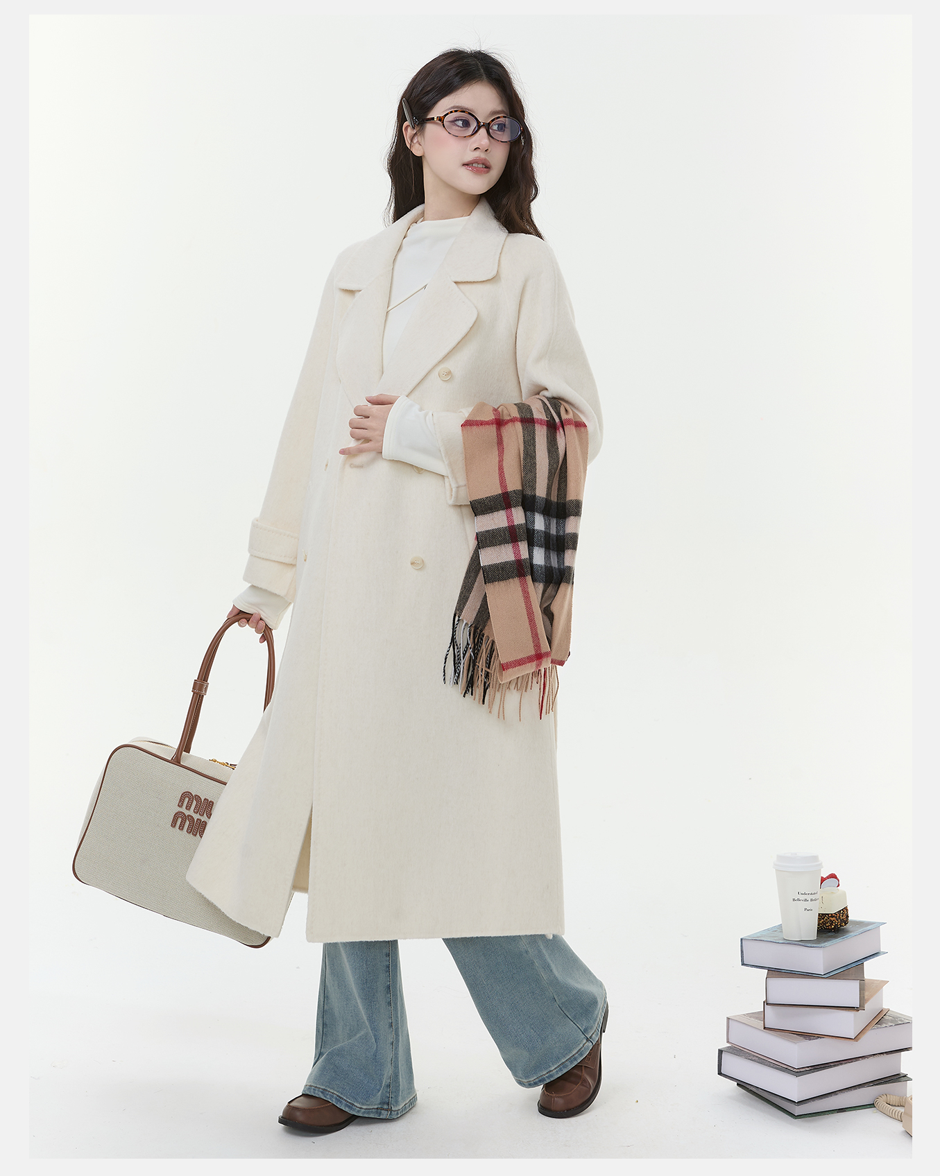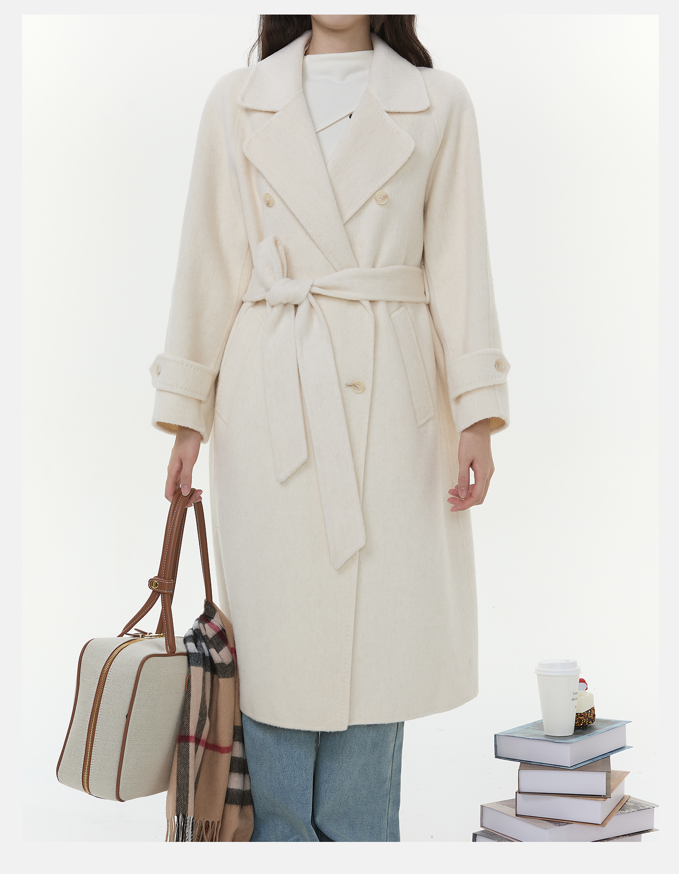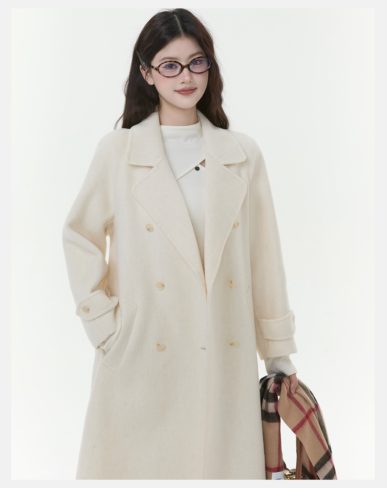 P&X设计师女装2025冬季西装领外套双面呢长款大衣 825421108 杏色