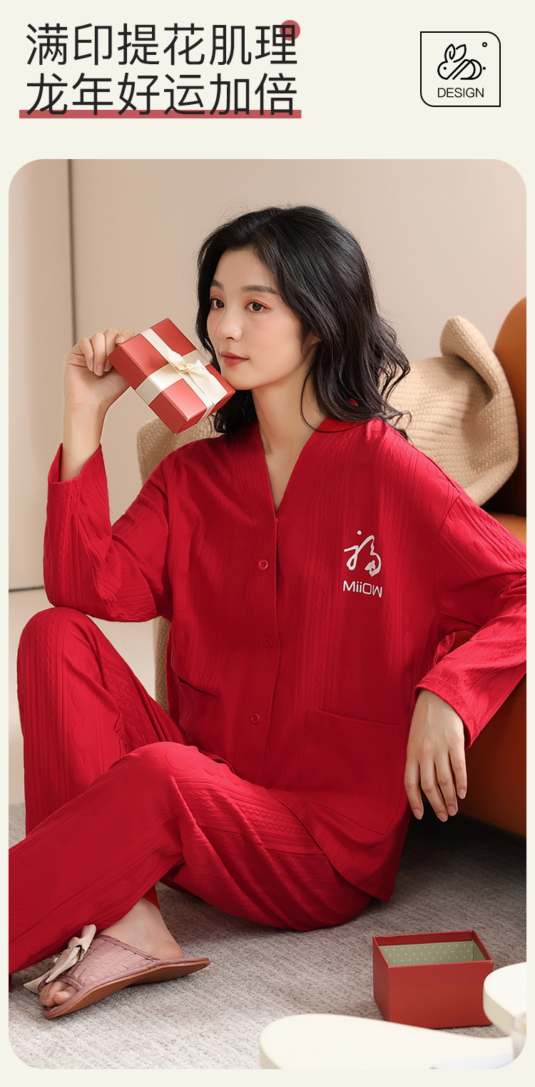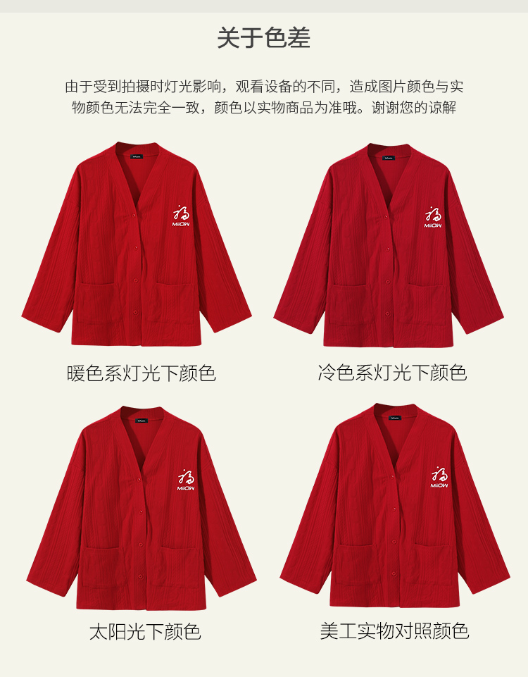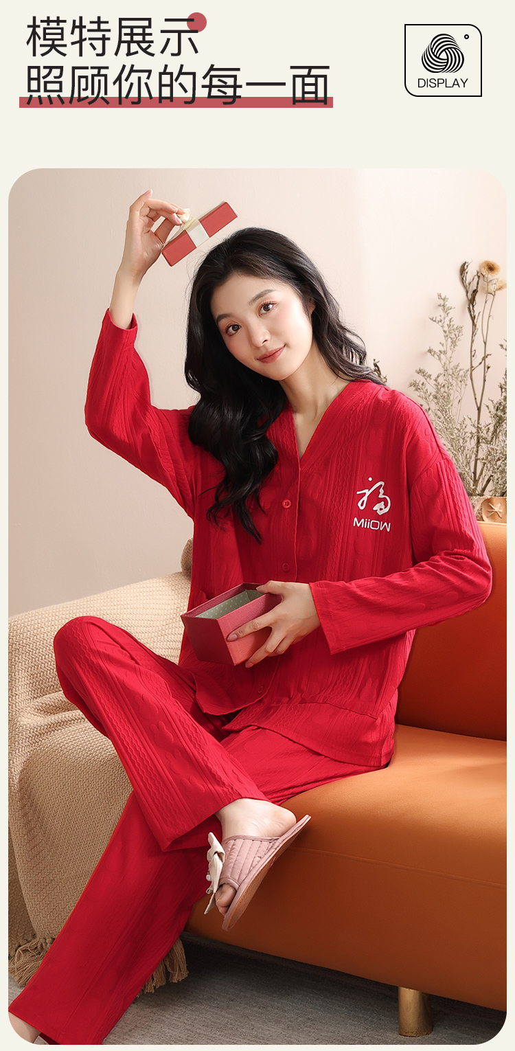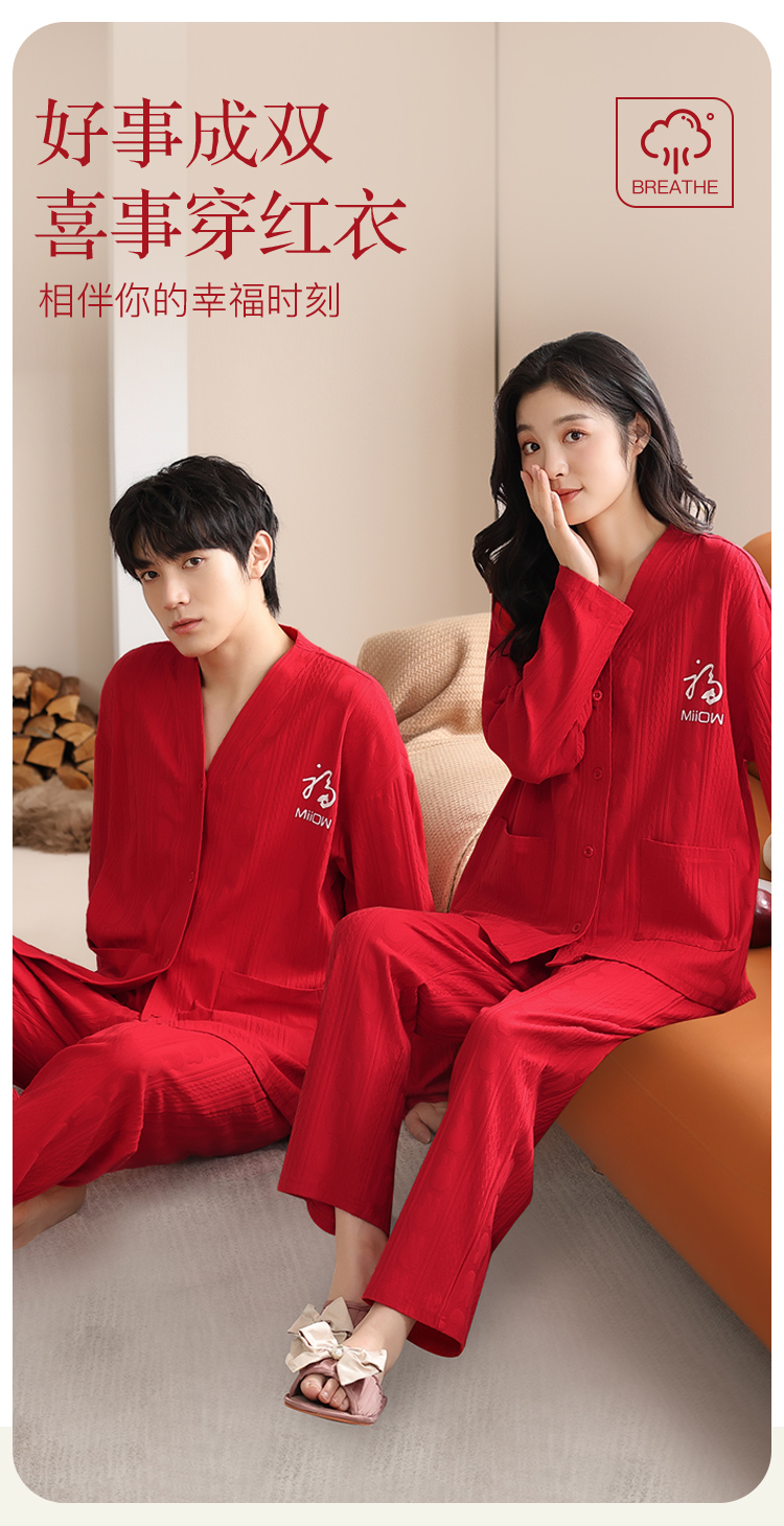 【情侣礼盒款】【M-3XL】【猫人】结婚红品家居服棉质开衫套装