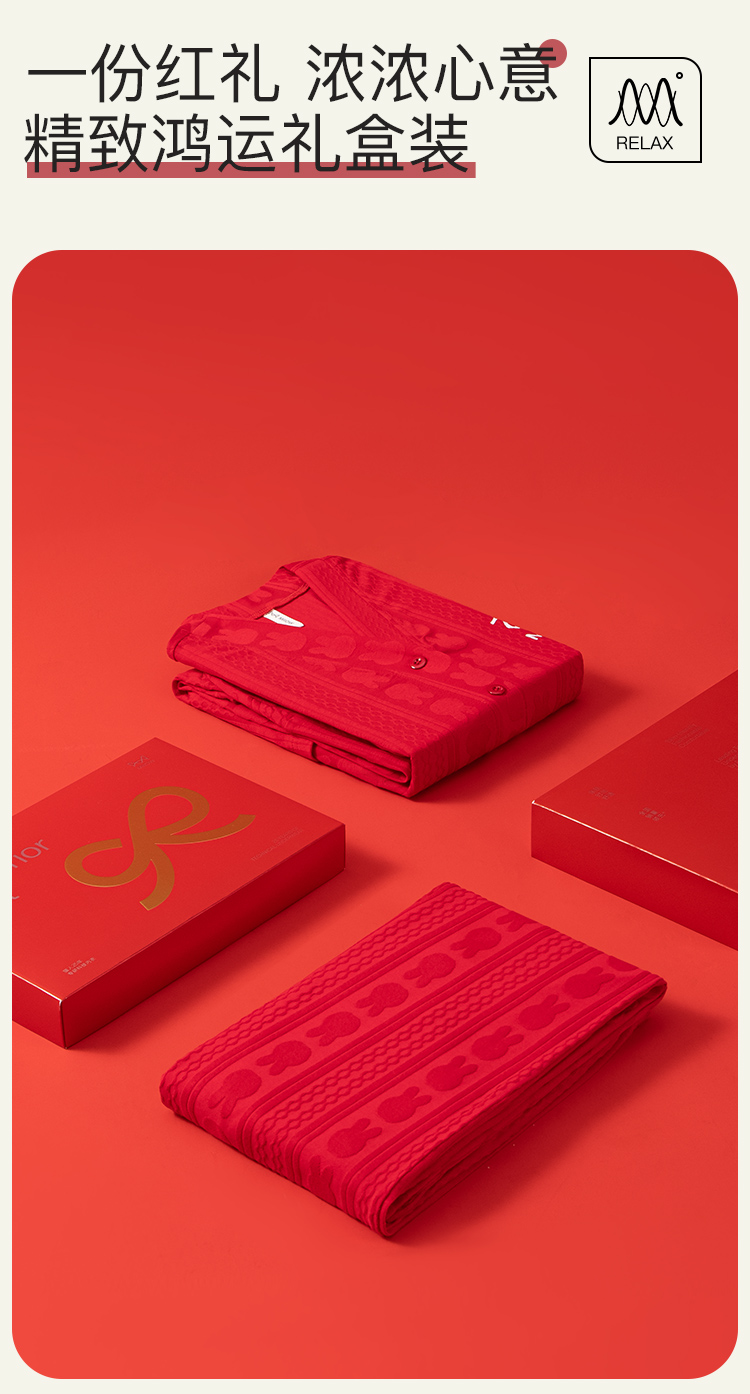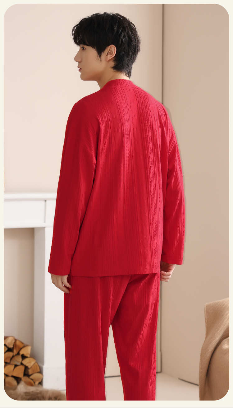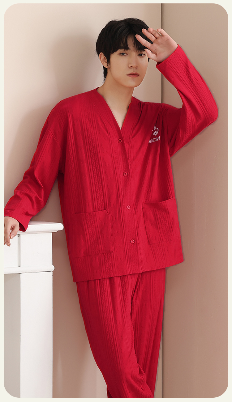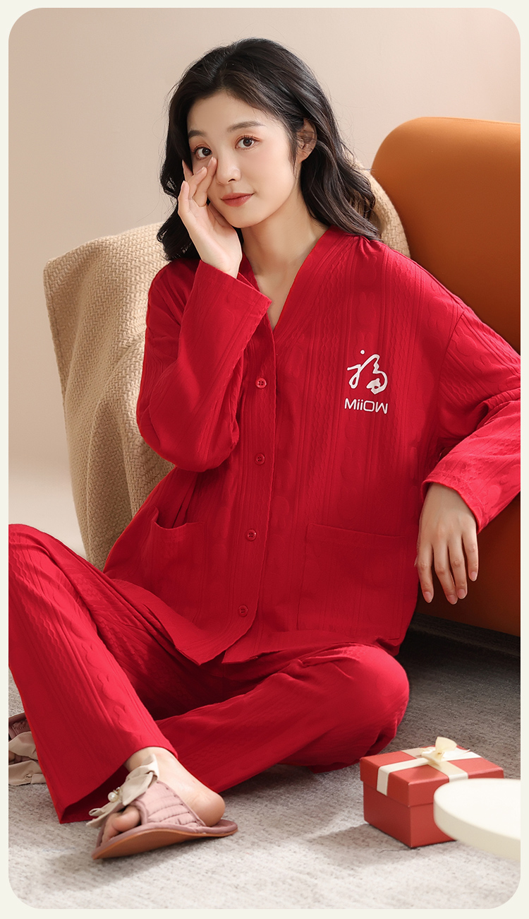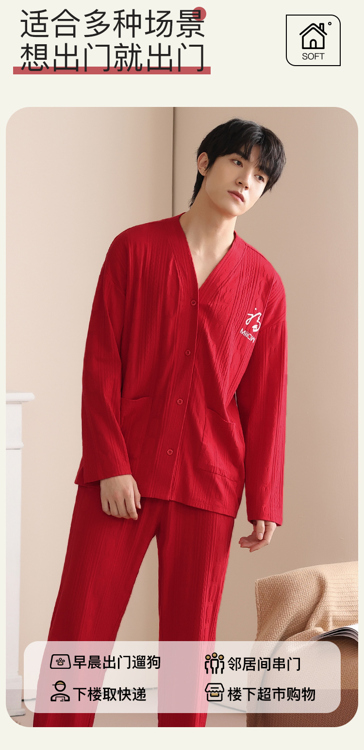 【情侣礼盒款】【M-3XL】【猫人】结婚红品家居服棉质开衫套装