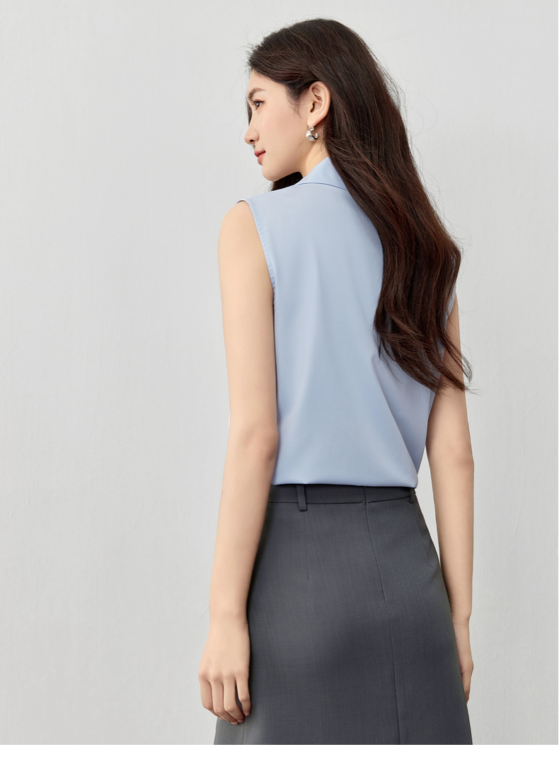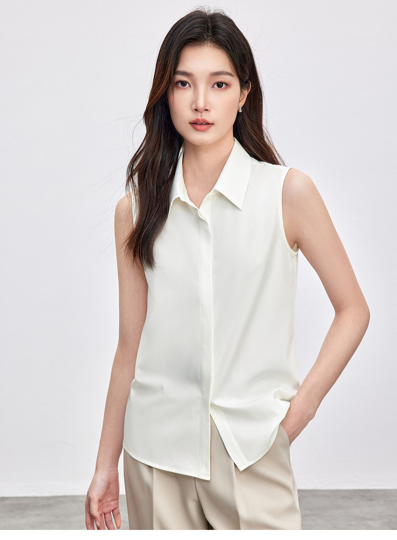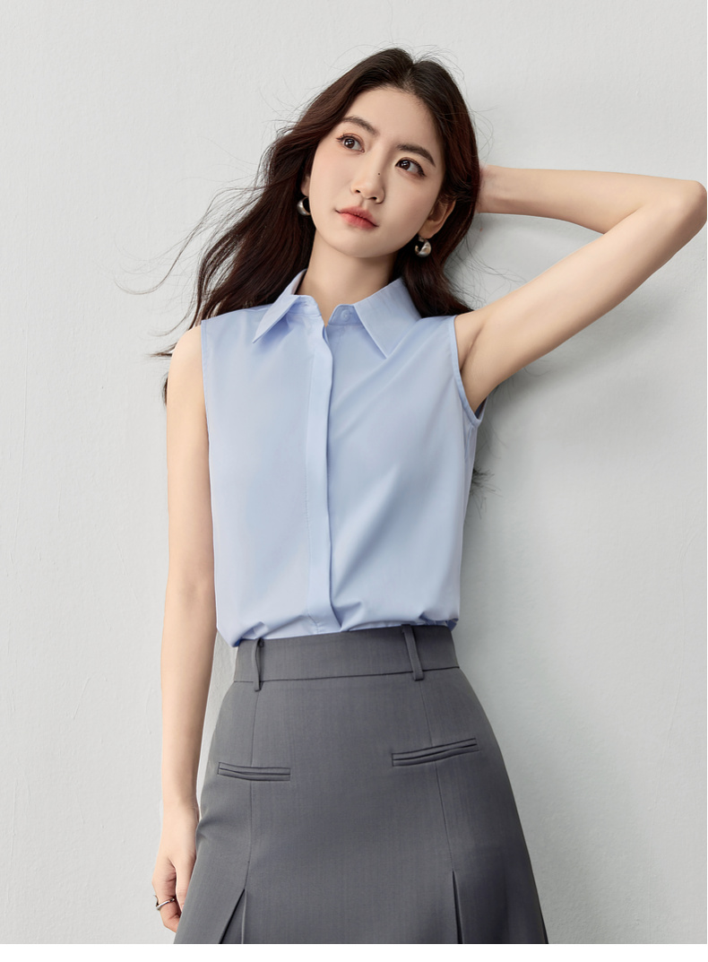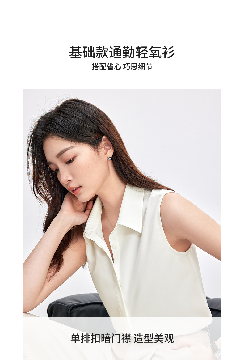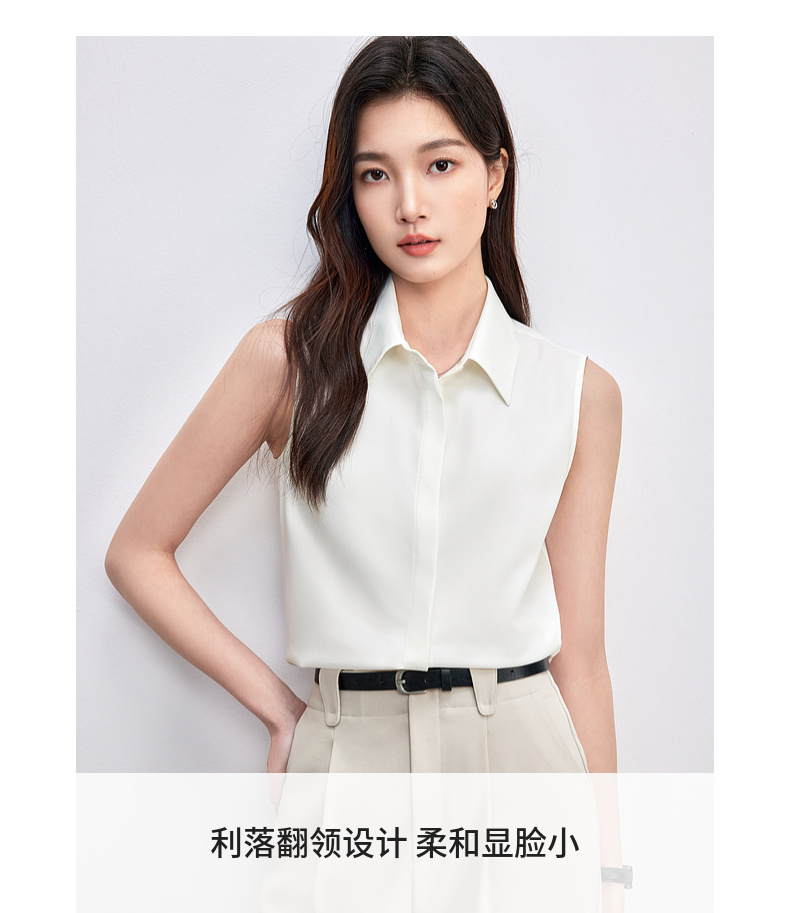 【内购】【轻氧衫】都市通勤上班翻领暗门襟清爽无袖衬衫-153CA3271X
