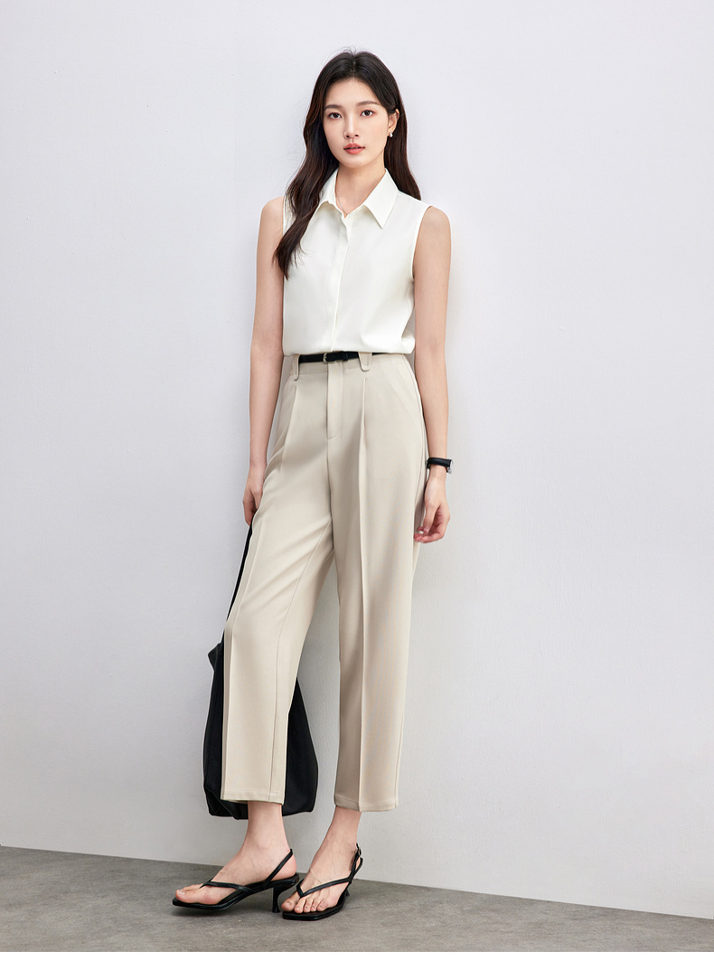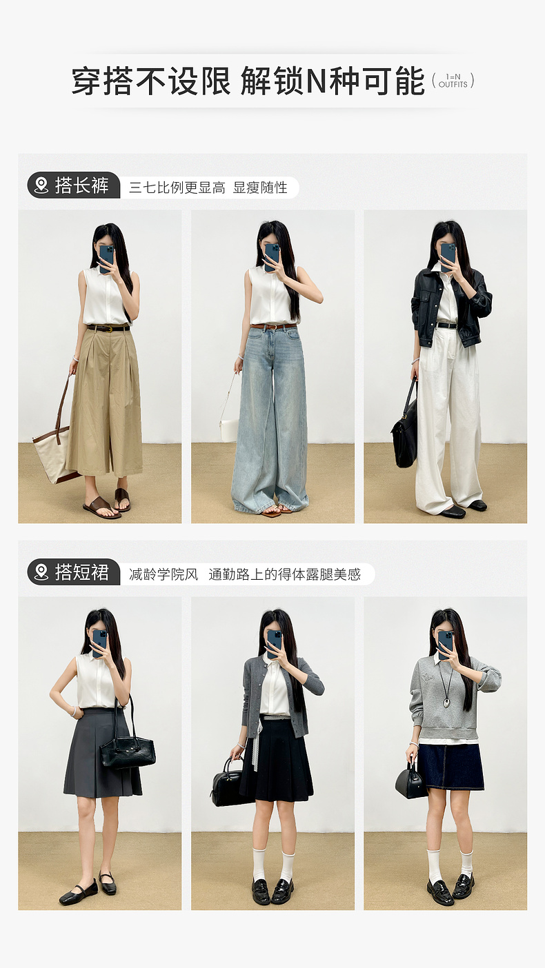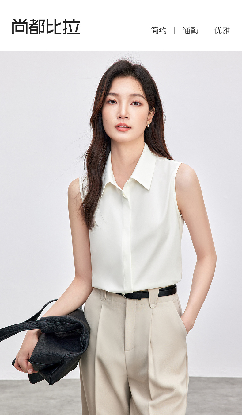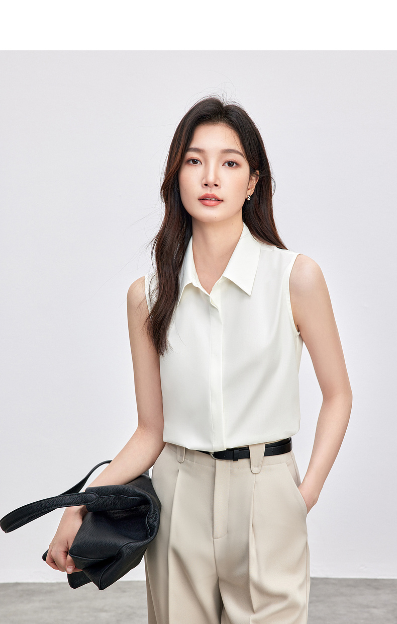 【内购】【轻氧衫】都市通勤上班翻领暗门襟清爽无袖衬衫-153CA3271X