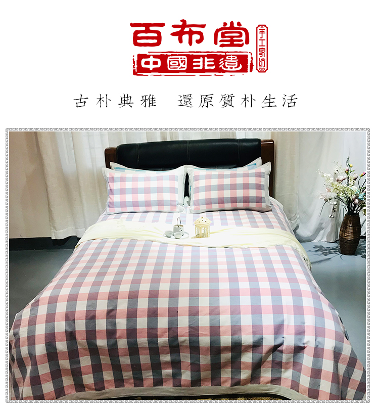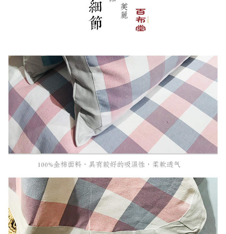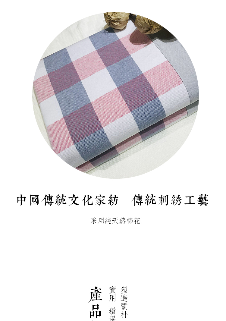 (乡村振兴商品)百布堂纯棉养生棉凉席三件套(粉蓝格子) 商品图4