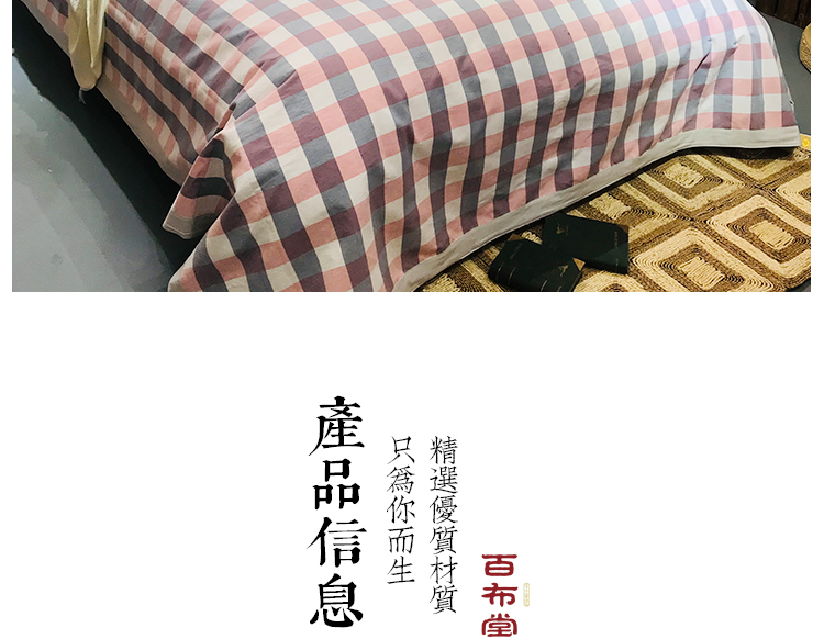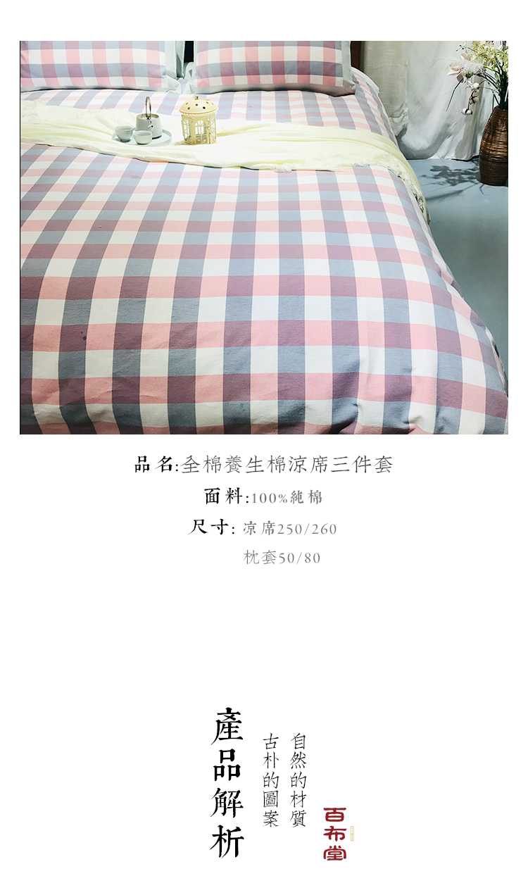 (乡村振兴商品)百布堂纯棉养生棉凉席三件套(粉蓝格子) 商品图0