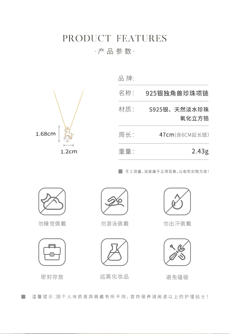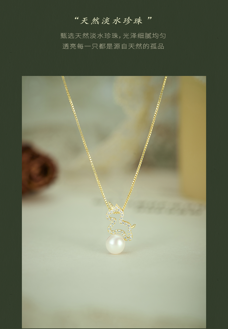 Oflye潮流饰品 S925银淡水珍珠小马项链女新款本命年生肖马吊坠锁骨链高级感配饰