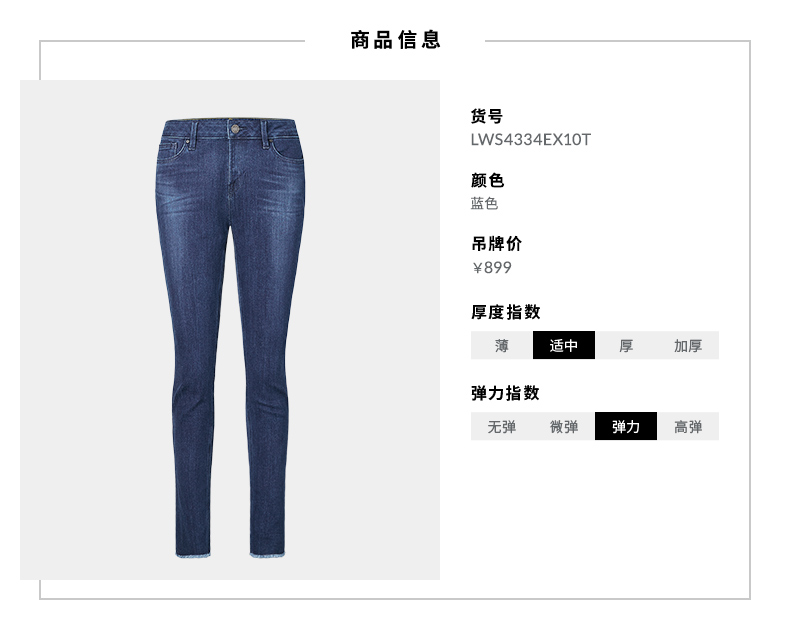 【尺码25】Lee商场同款女款高腰修身小脚牛仔裤LWS4334EX10T