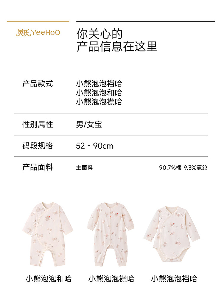 英氏婴儿连体衣四季10A抗菌长袖哈衣宝宝睡衣爬服YLDAJ0S002A YLHAJ0S002A YLAAJ0S002A