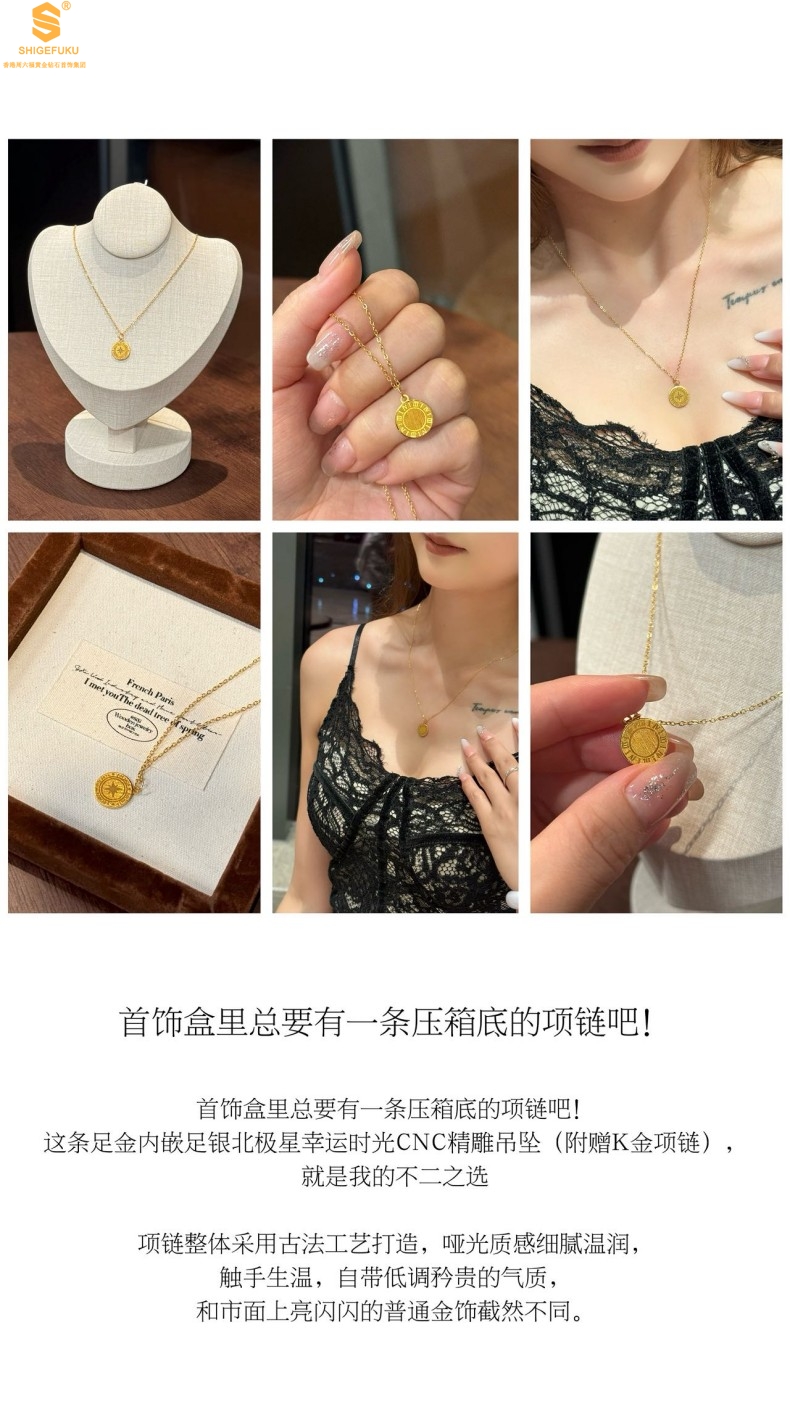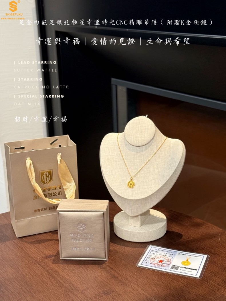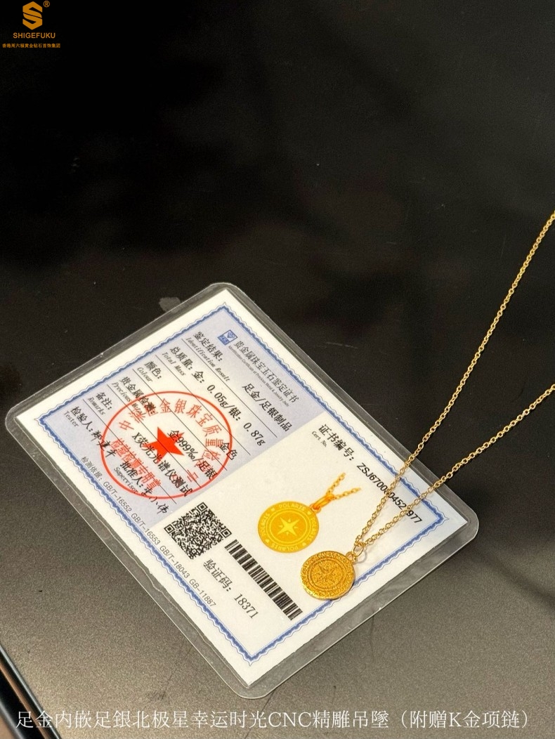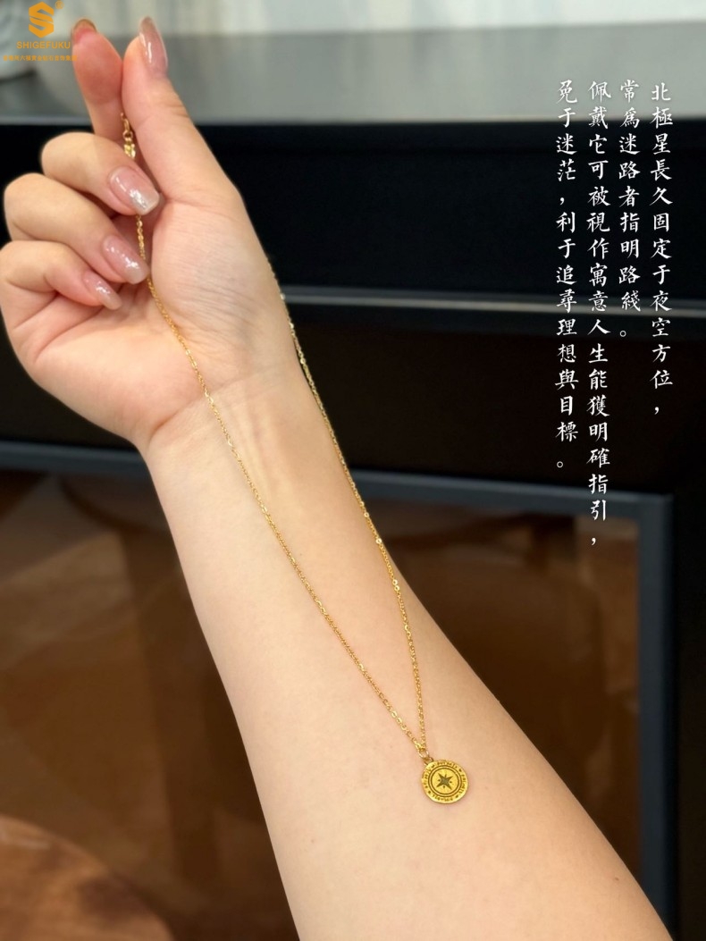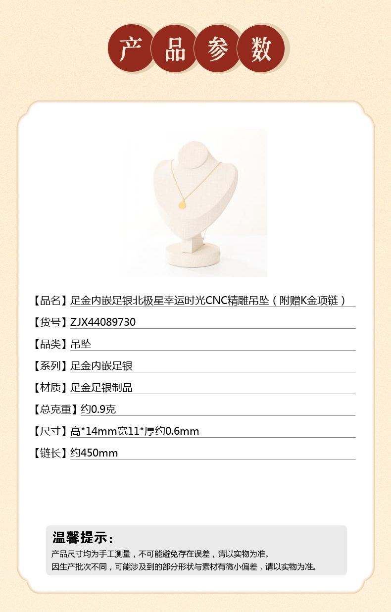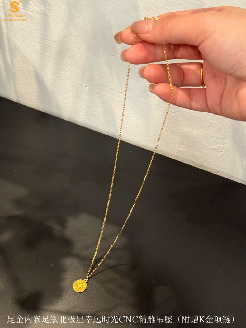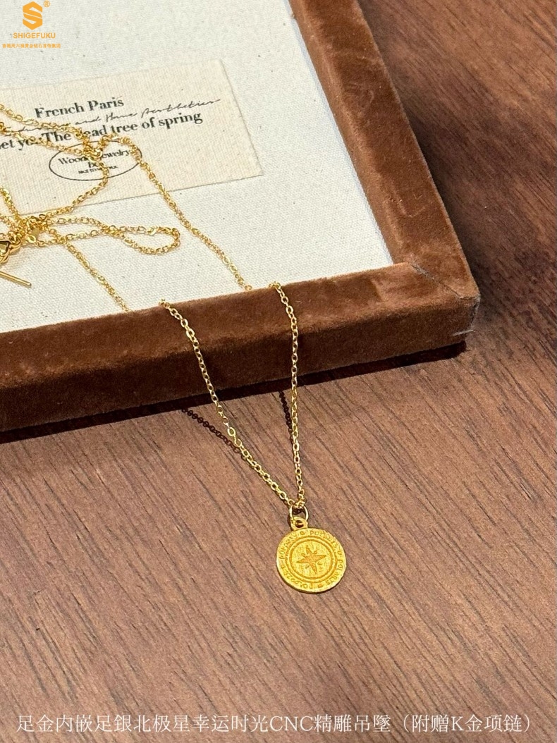 【品名】足金内嵌足银北极星幸运时光CNC精雕吊坠(附赠K金项链)