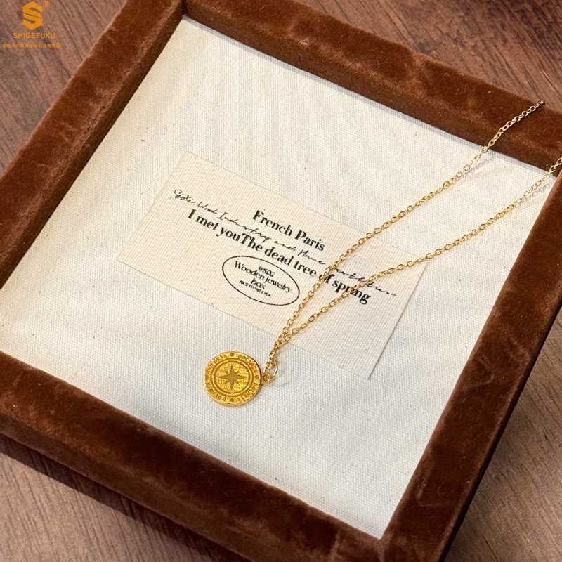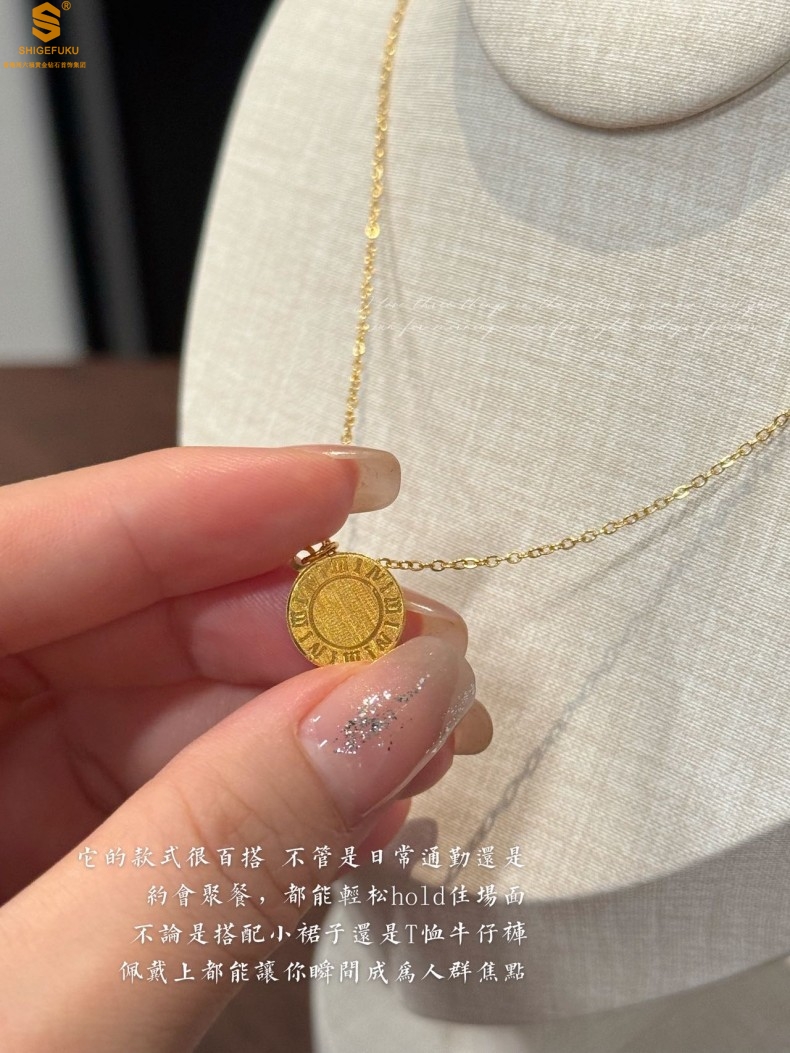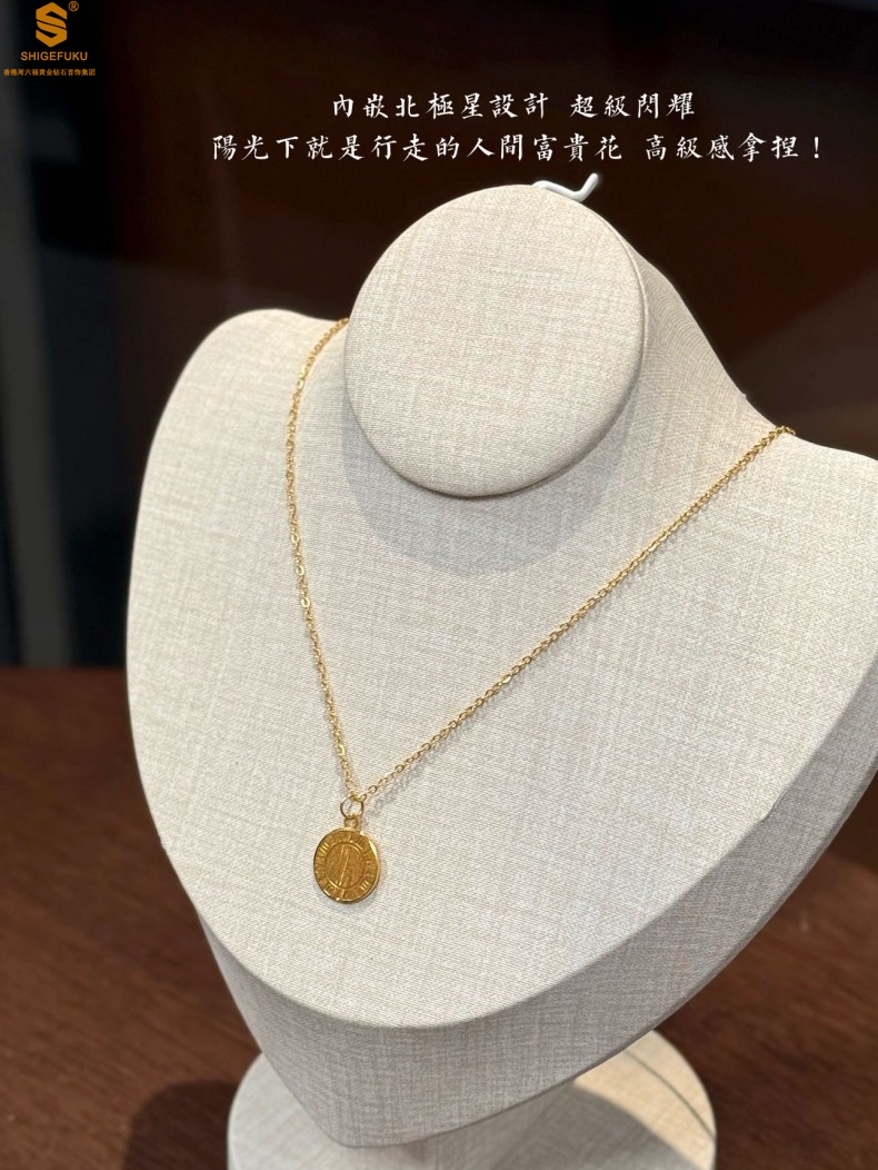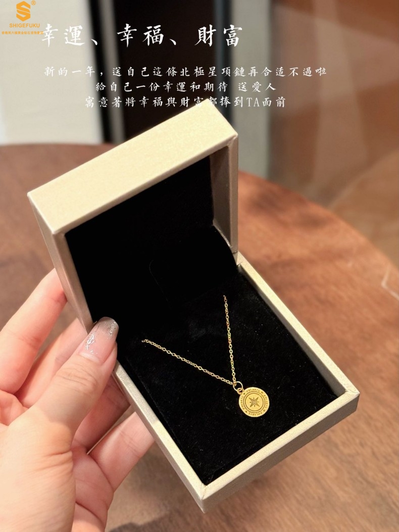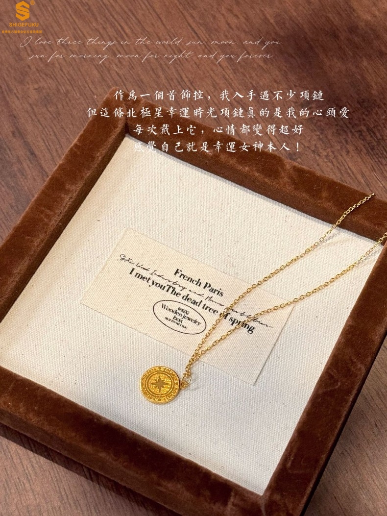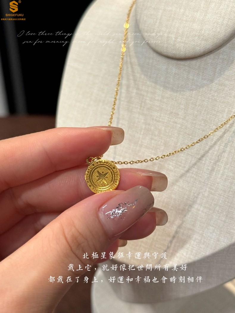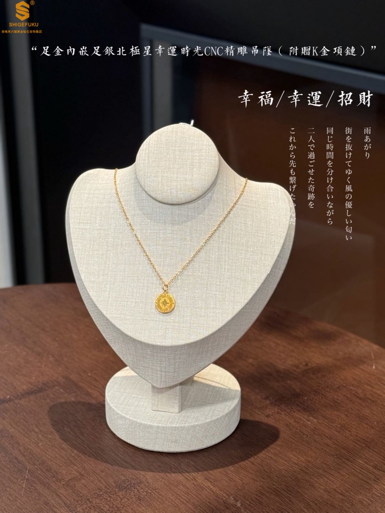 【品名】足金内嵌足银北极星幸运时光CNC精雕吊坠(附赠K金项链)