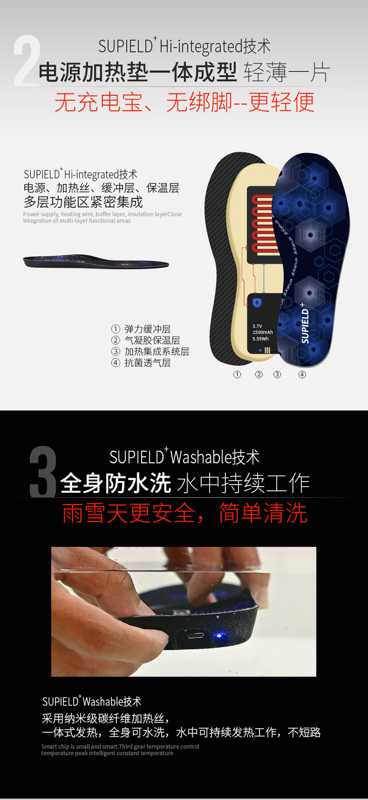 Supield素湃黑科技宇航蓝奇热气凝胶智能加热温控保暖鞋垫男女款