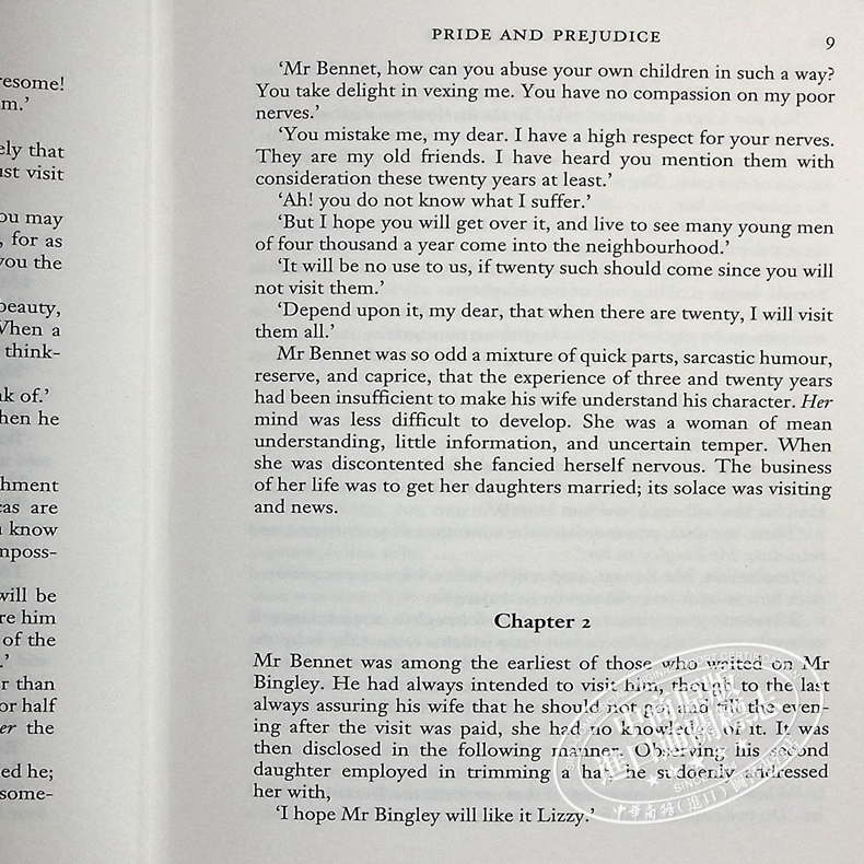 Pride and Prejudice, which opens with one of the most famous sentences in English Literature, is an ironic novel of manners. In it the garrulous and empty-headed Mrs Bennet has only one aim - that of finding a good match for each of her five daughters. In this she is mocked by her cynical and indolent husband.