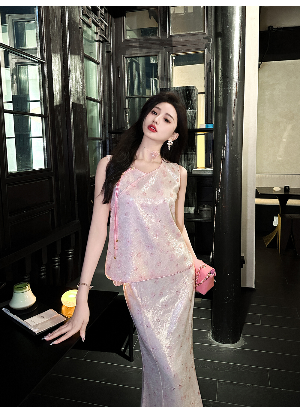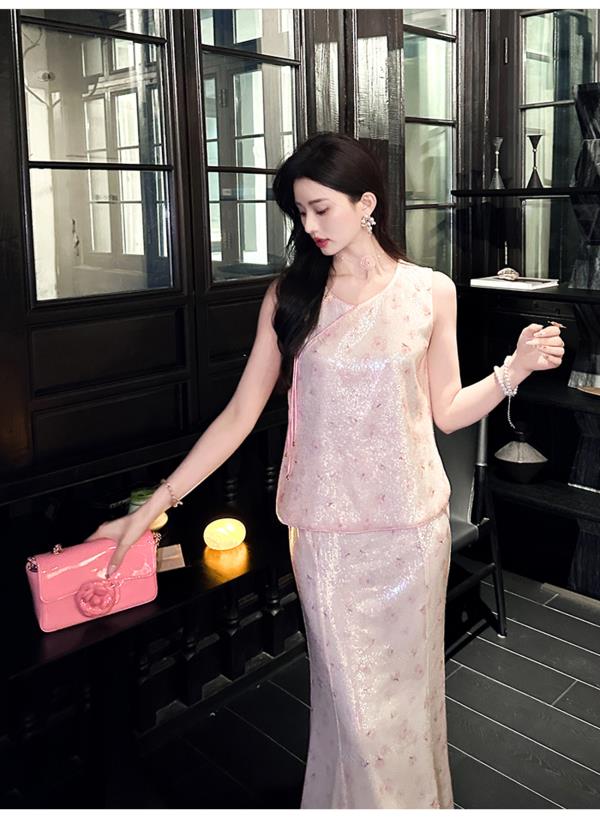 【孤品样衣,不退不换】【西洋丁香】新中式国风温婉典雅亮片刺绣上衣&半裙女