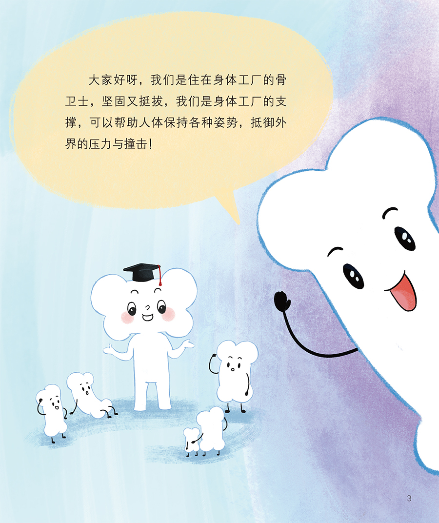 健康理念需要从小建立,健康习惯需要从小养成,利用儿童容易接受的绘本读物形式,激发他们的兴趣与参与感,传播正确的健康知识,促进儿童卫生行为的养成,并通过亲子共读,以小手拉大手的方式提升家庭健康素养,适合家庭共读,有很好的公共卫生知识传播意义,让我国“三减三健”科普工作更有抓手。以“健康骨骼”为主题的儿童绘本,充满童趣,绘本主题包括多吃富含钙和维生素D的食物;清淡饮食,减少食盐摄入量;少喝碳酸饮料;平均每天晒太阳至少20分钟;适量运动,维持和提高肌肉关节功能;平衡练习,减少跌倒和骨折的风险等。