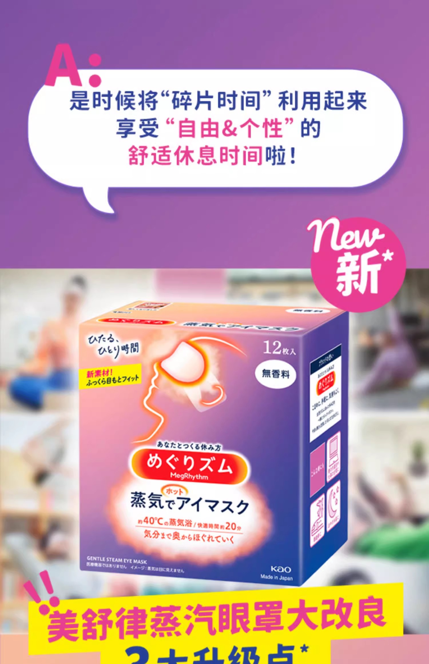 日本花王蒸汽眼罩12片/盒 给眼睛做SPA安心助眠 惬意享受多香可选 112211/112212/112213/112214/112307