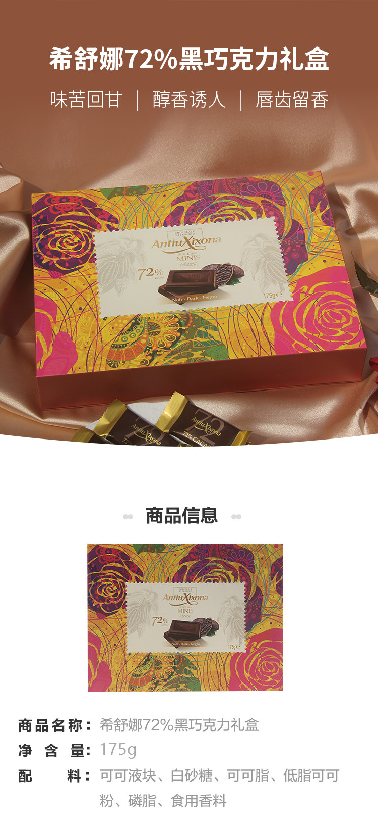 西班牙希舒娜黑巧克力礼盒175g 72% 味苦回甘 醇香诱人 040171