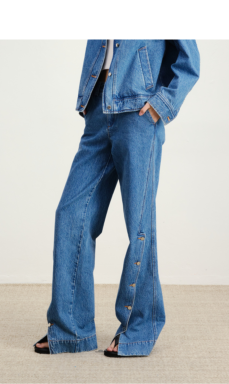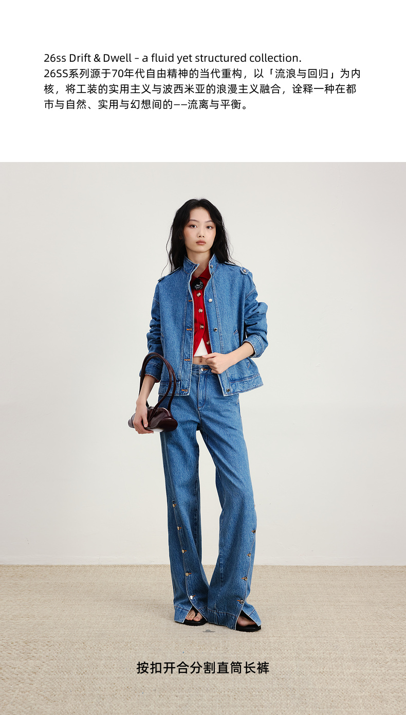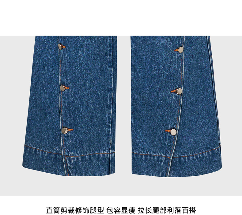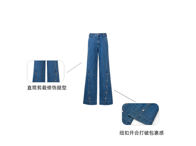 lost in echo2026早春新款休闲风按扣开合分割阔腿直筒牛仔长裤女