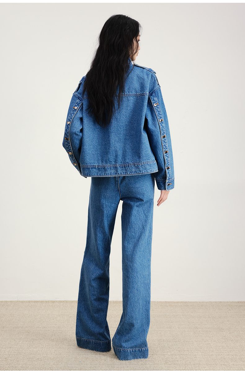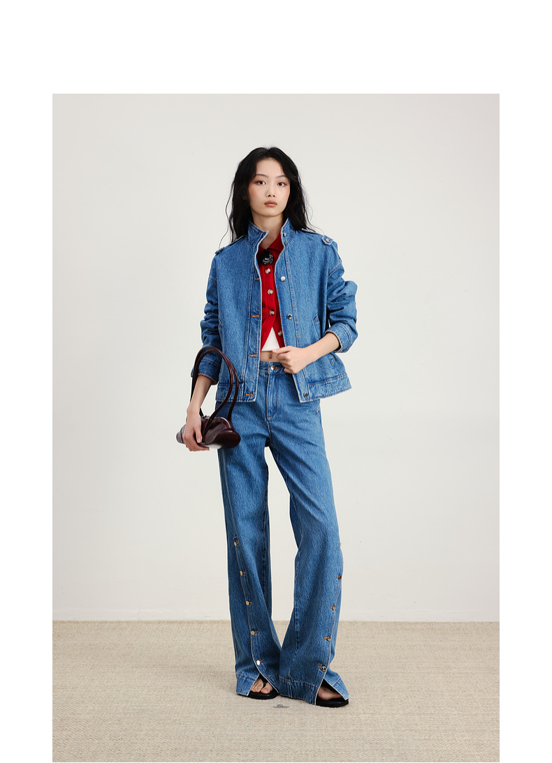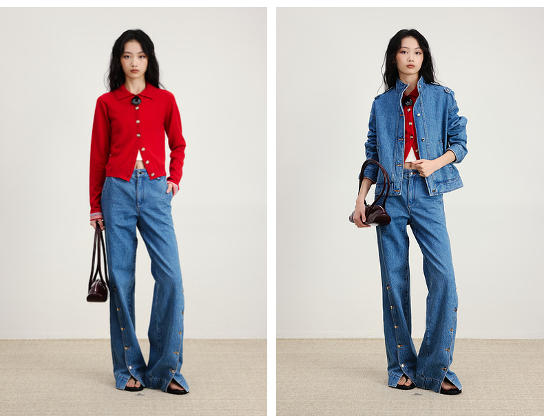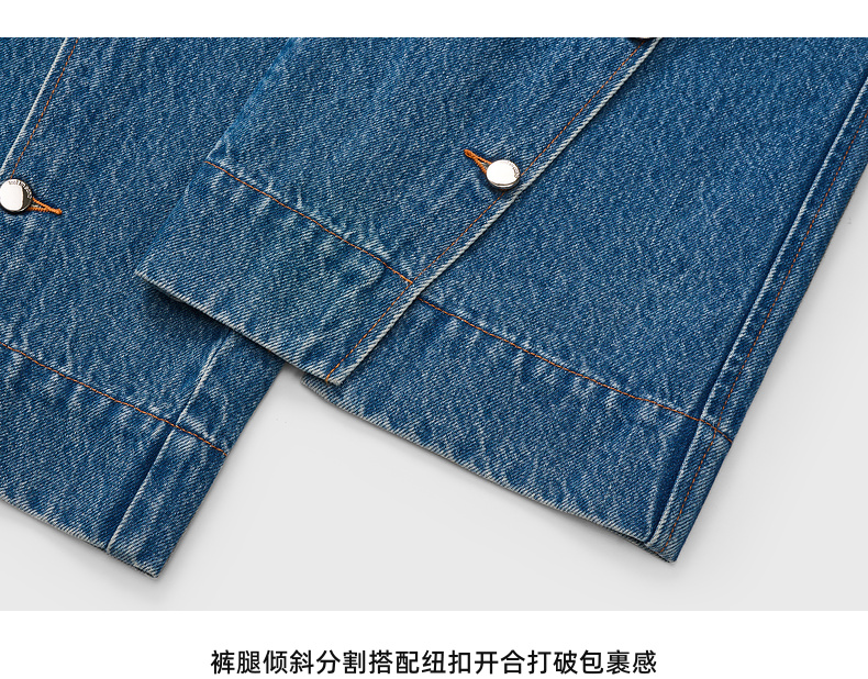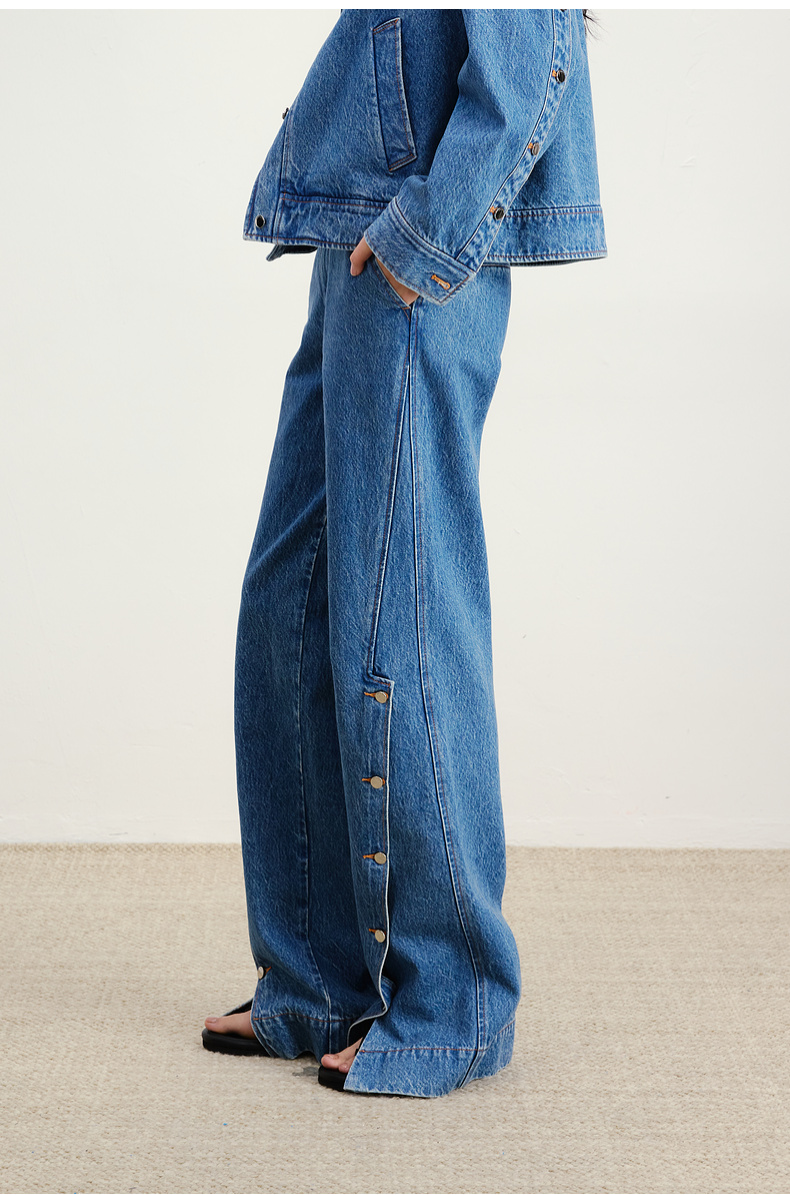 lost in echo2026早春新款休闲风按扣开合分割阔腿直筒牛仔长裤女