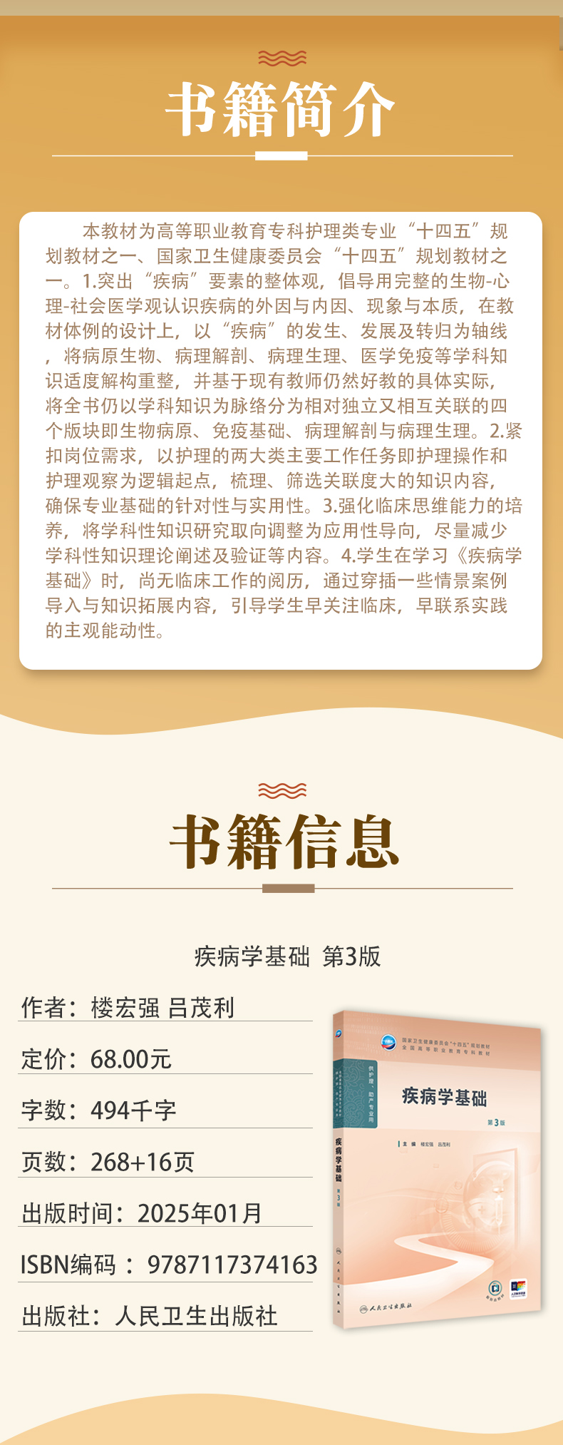 疾病学基础 第3三版 十四五规划教材全国高等职业教育专科教材 楼宏强 吕茂利编 供护理助产专业用 9787117374163人民卫生出版社