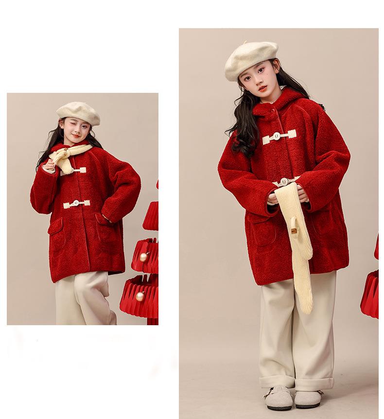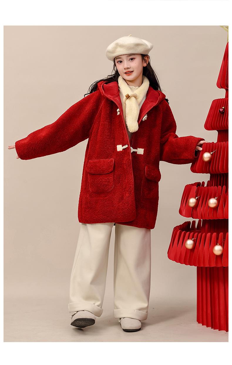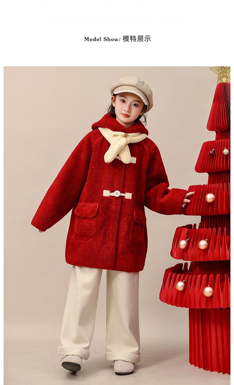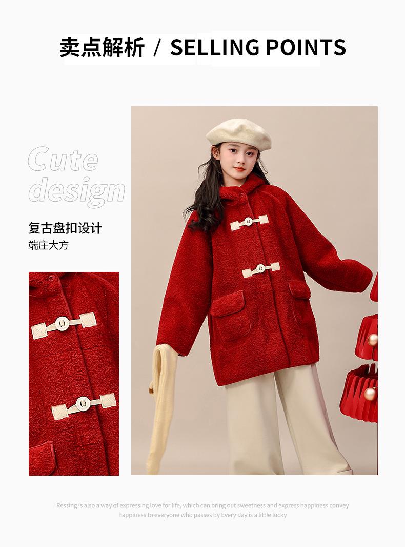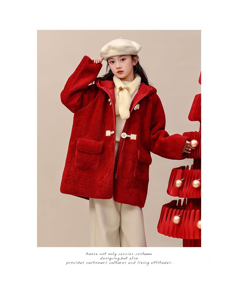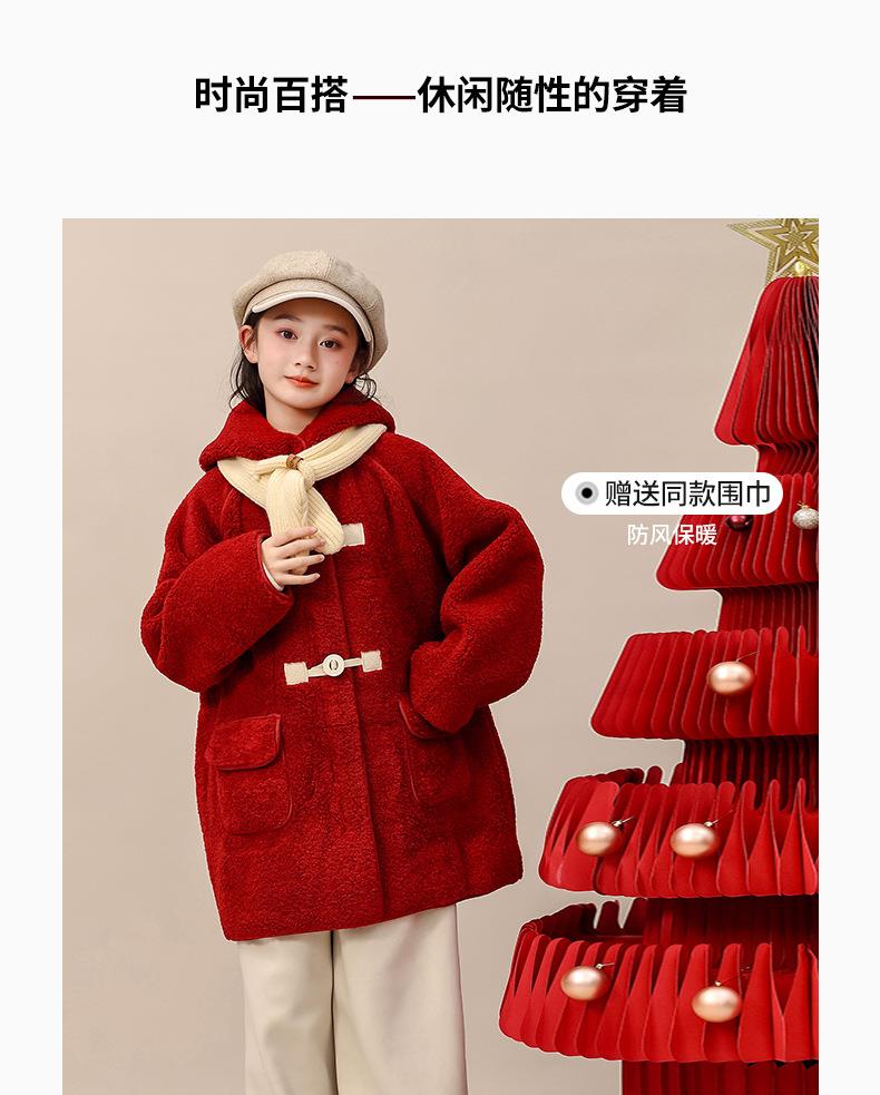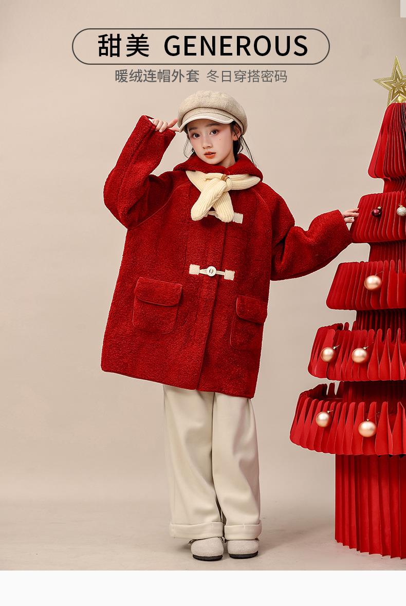 毛毛衣大衣外套2025冬款新款中长款加厚保暖连帽小女孩加绒女童秋