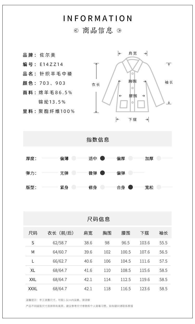 佐尔美秋冬新款 气质优雅针织羊毛大衣外套女E14ZZ14