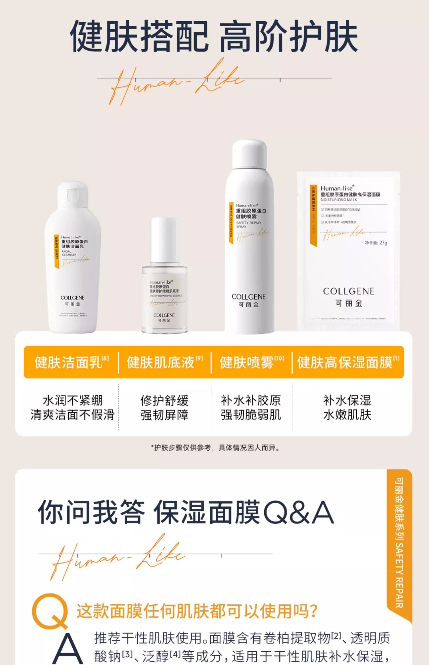 可丽金重组胶原蛋白健肤高保湿面膜27g*5片/盒
