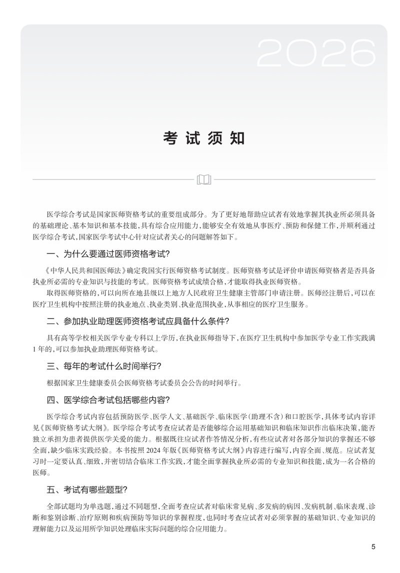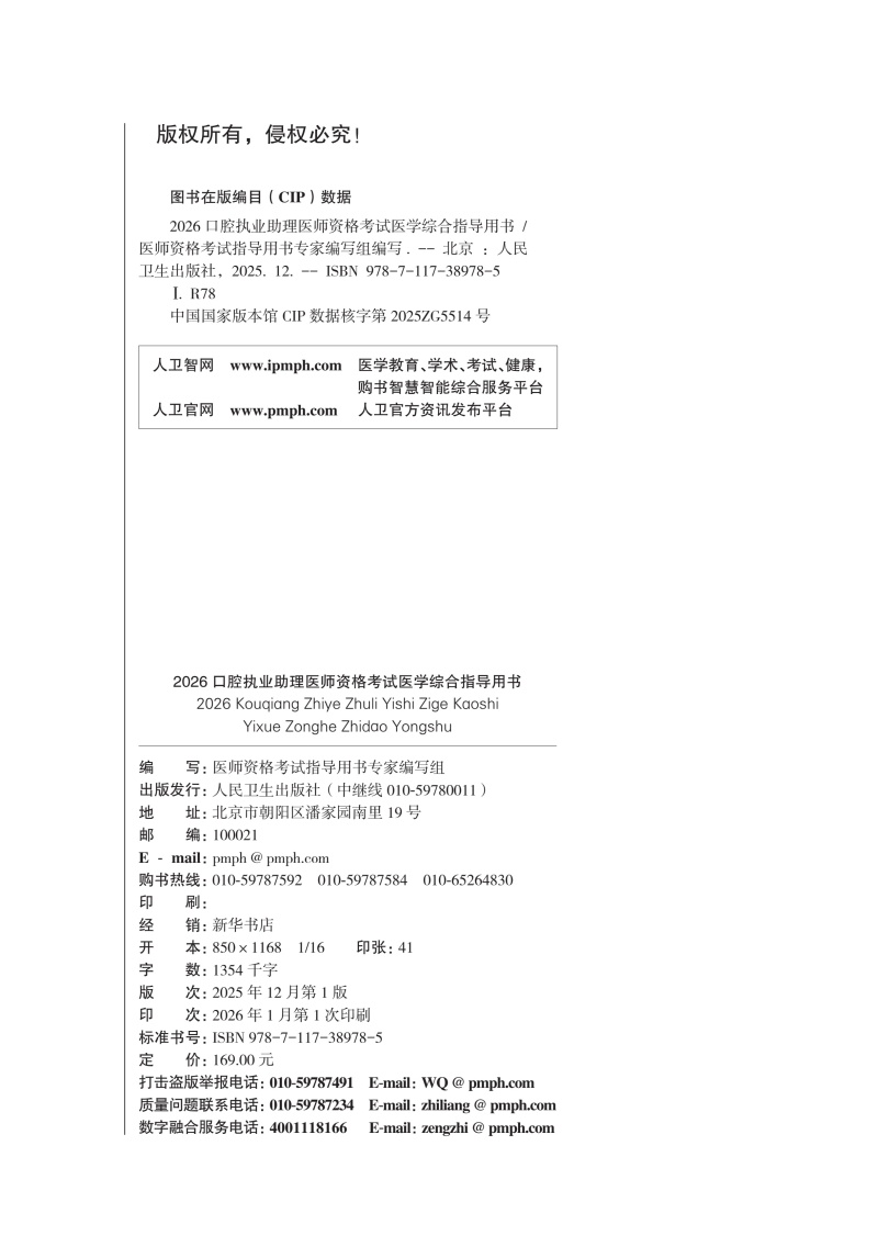 书名:2026口腔执业助理医师资格考试医学综合指导用书
