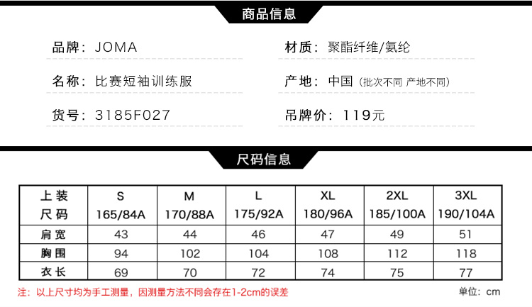 【99两件】西班牙JOMA霍马运动透气舒适休闲短袖T恤