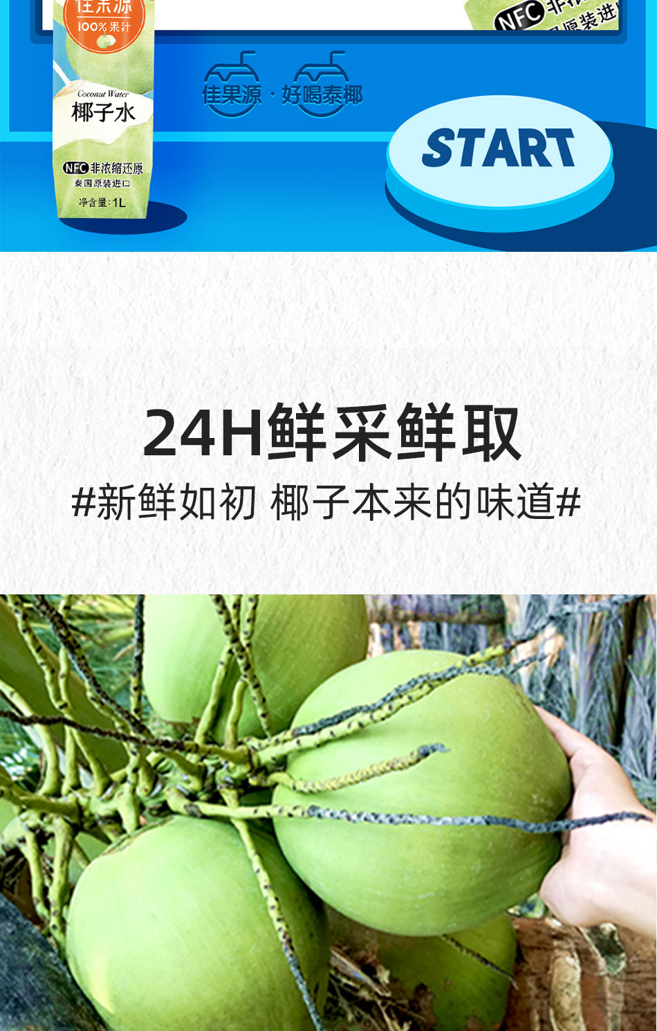 1L装佳果源NFC椰子水 泰国进口 自然好喝 不怕比