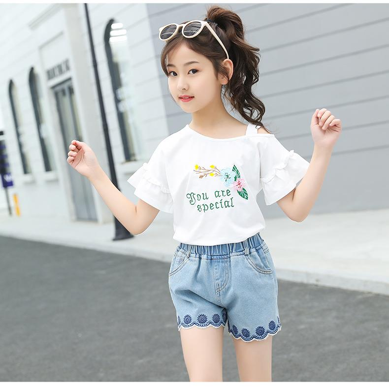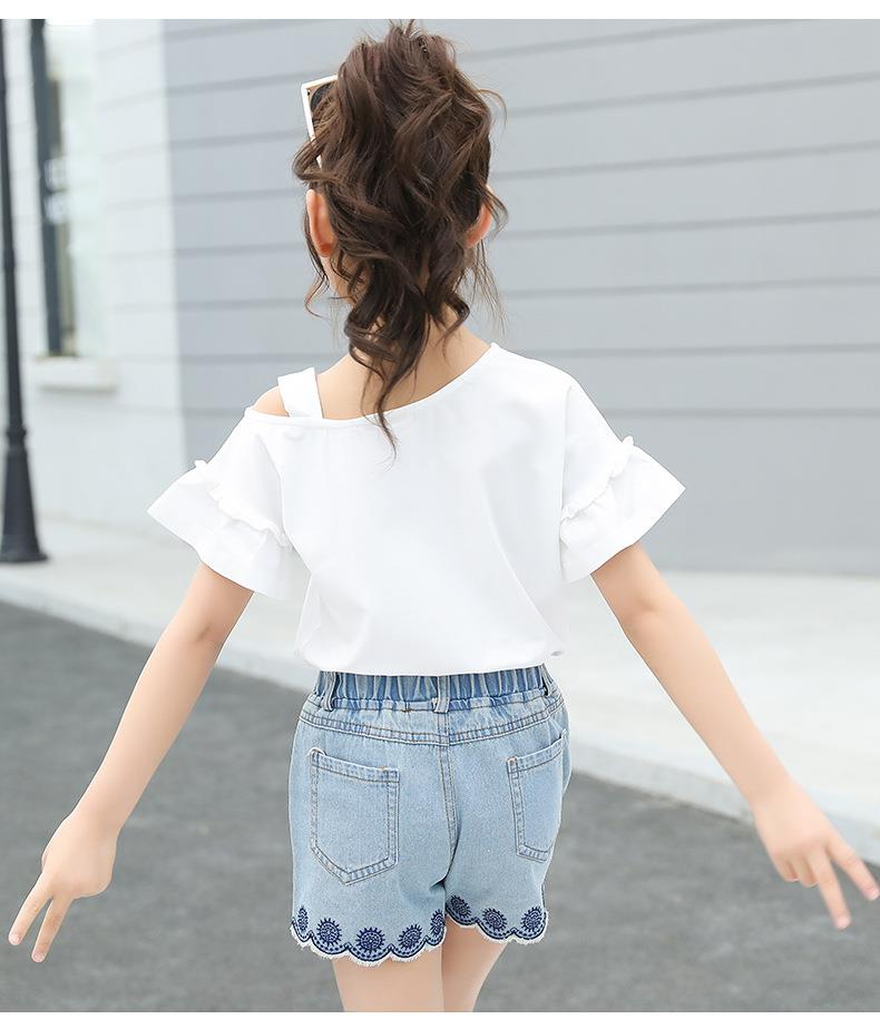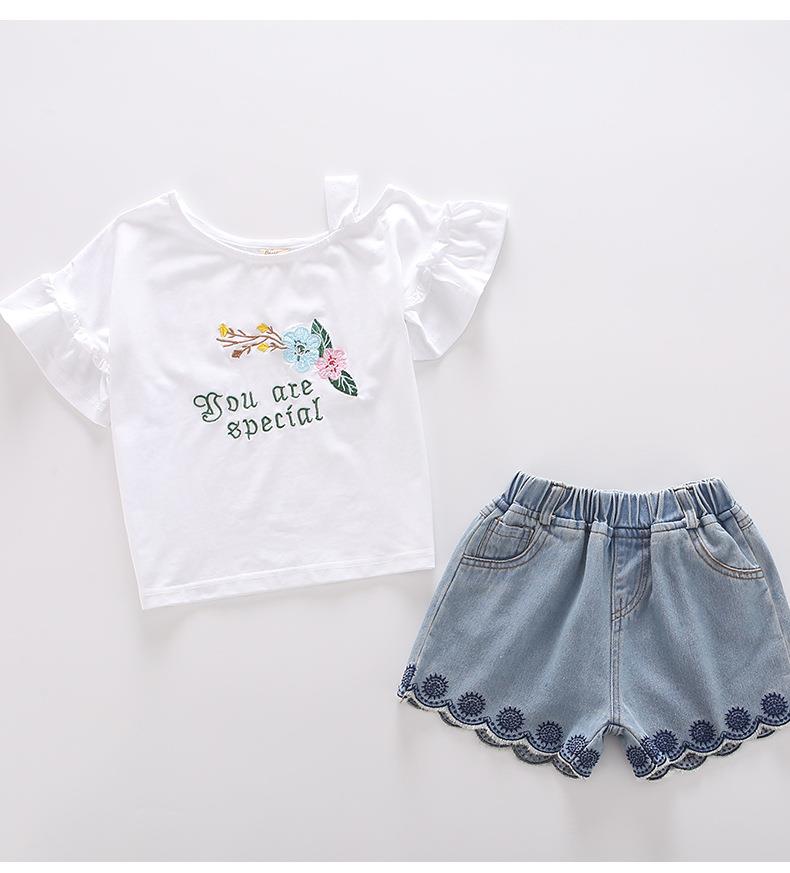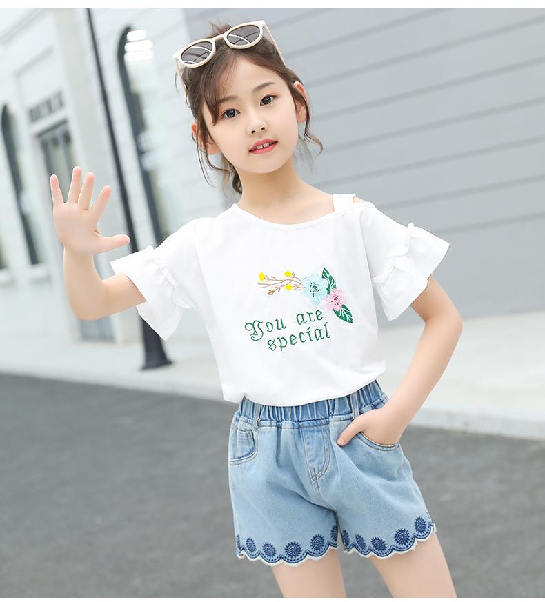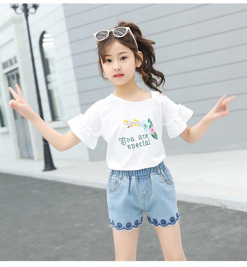 女童套装2023新款跨境外贸童装儿童夏季牛仔短裤T恤时髦两件套潮