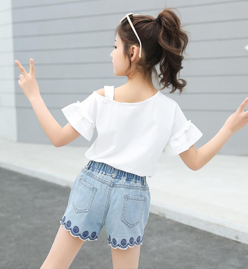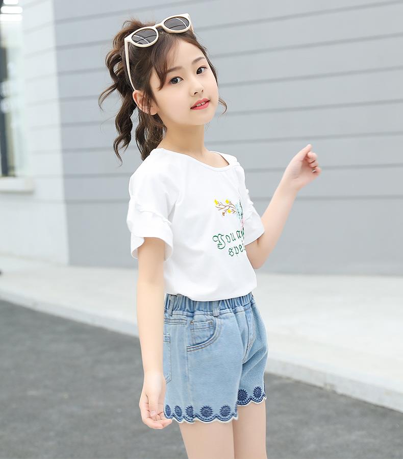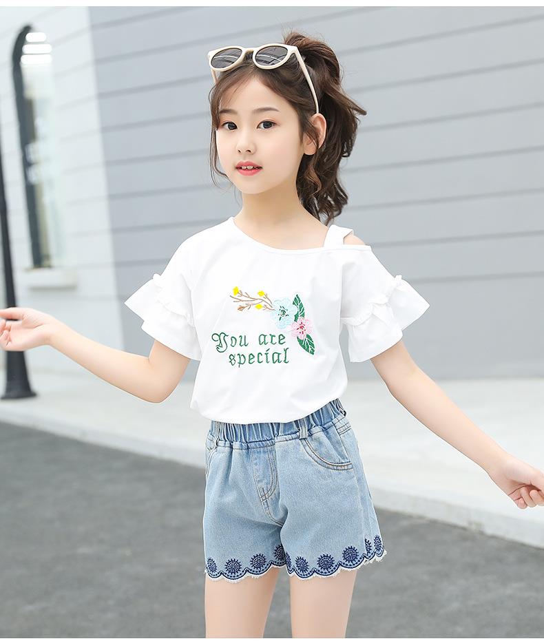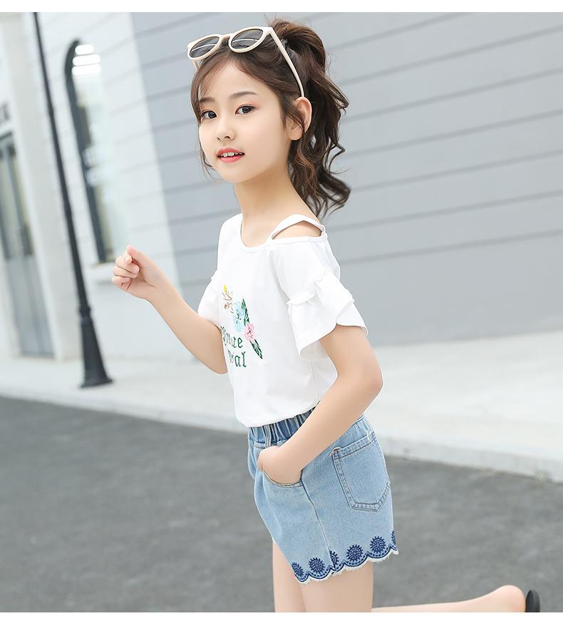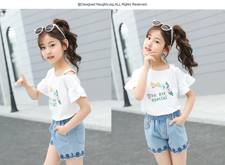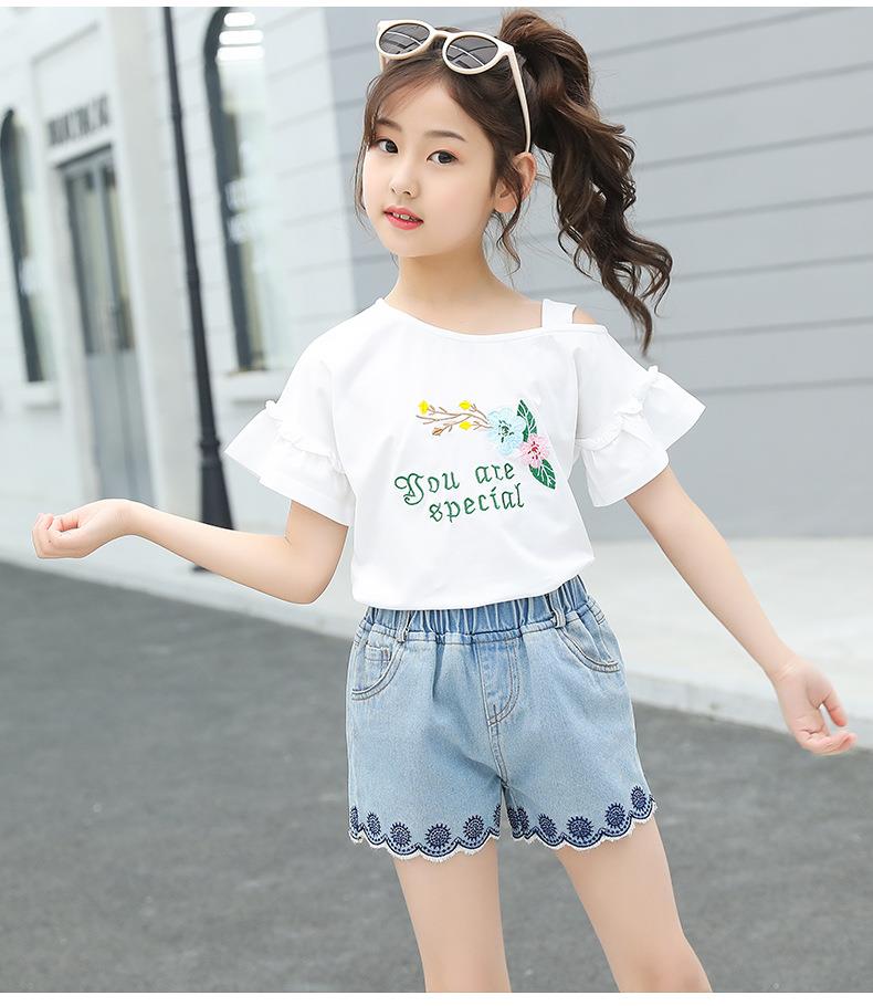女童套装2023新款跨境外贸童装儿童夏季牛仔短裤T恤时髦两件套潮