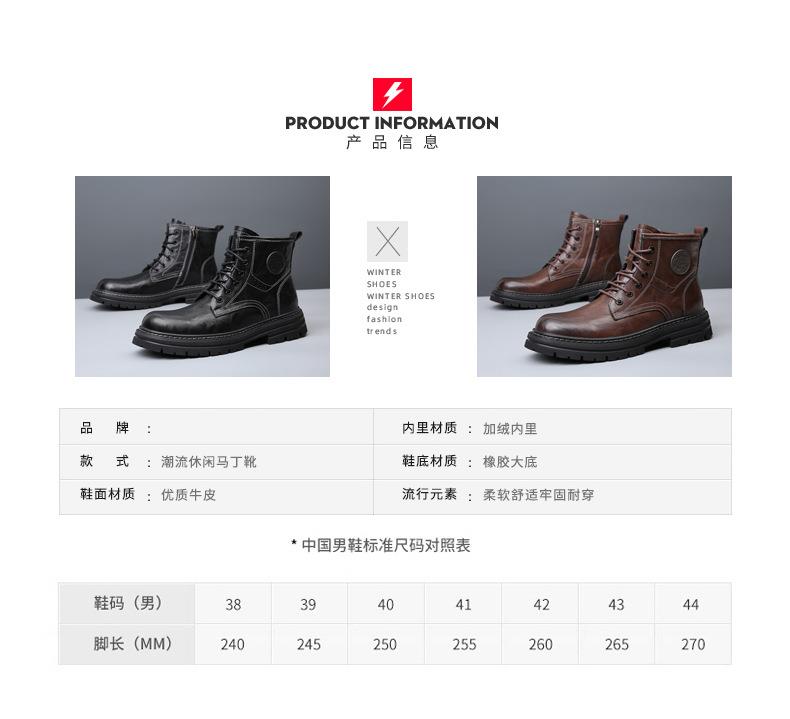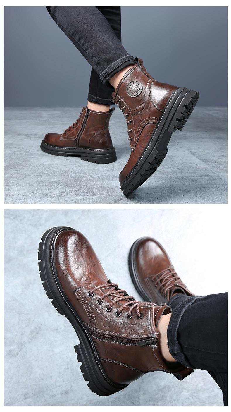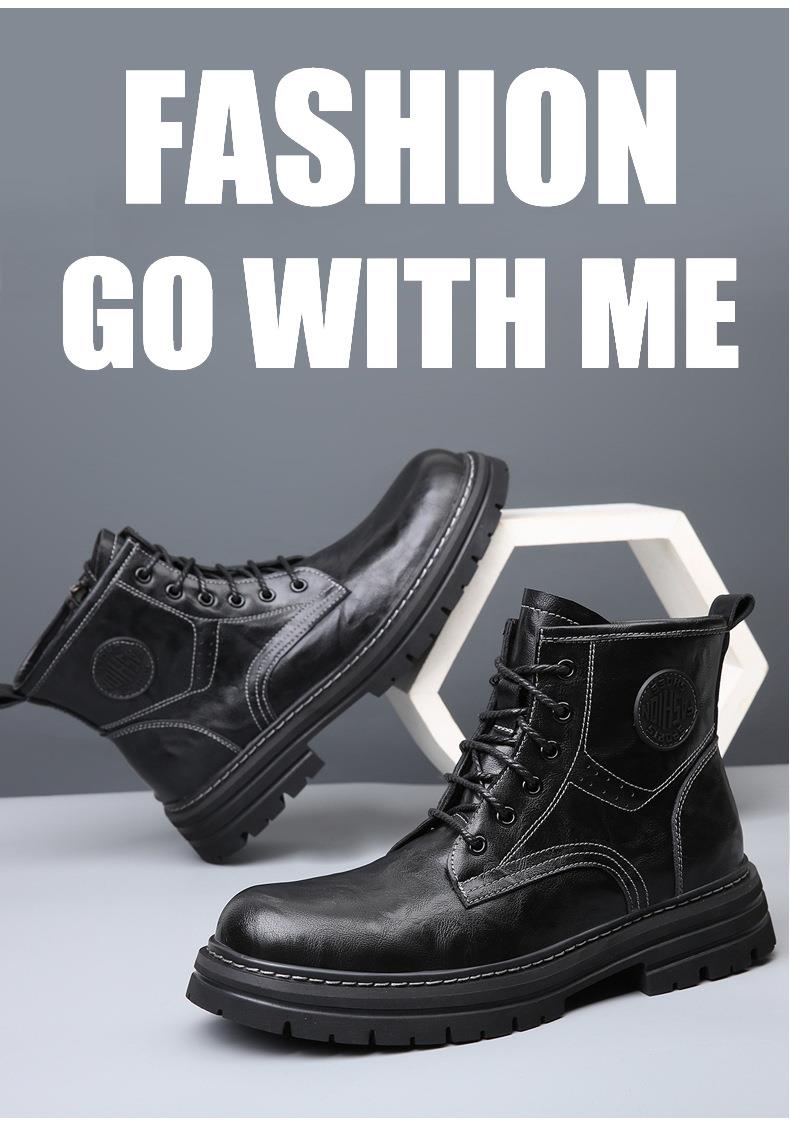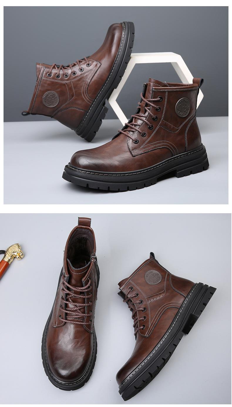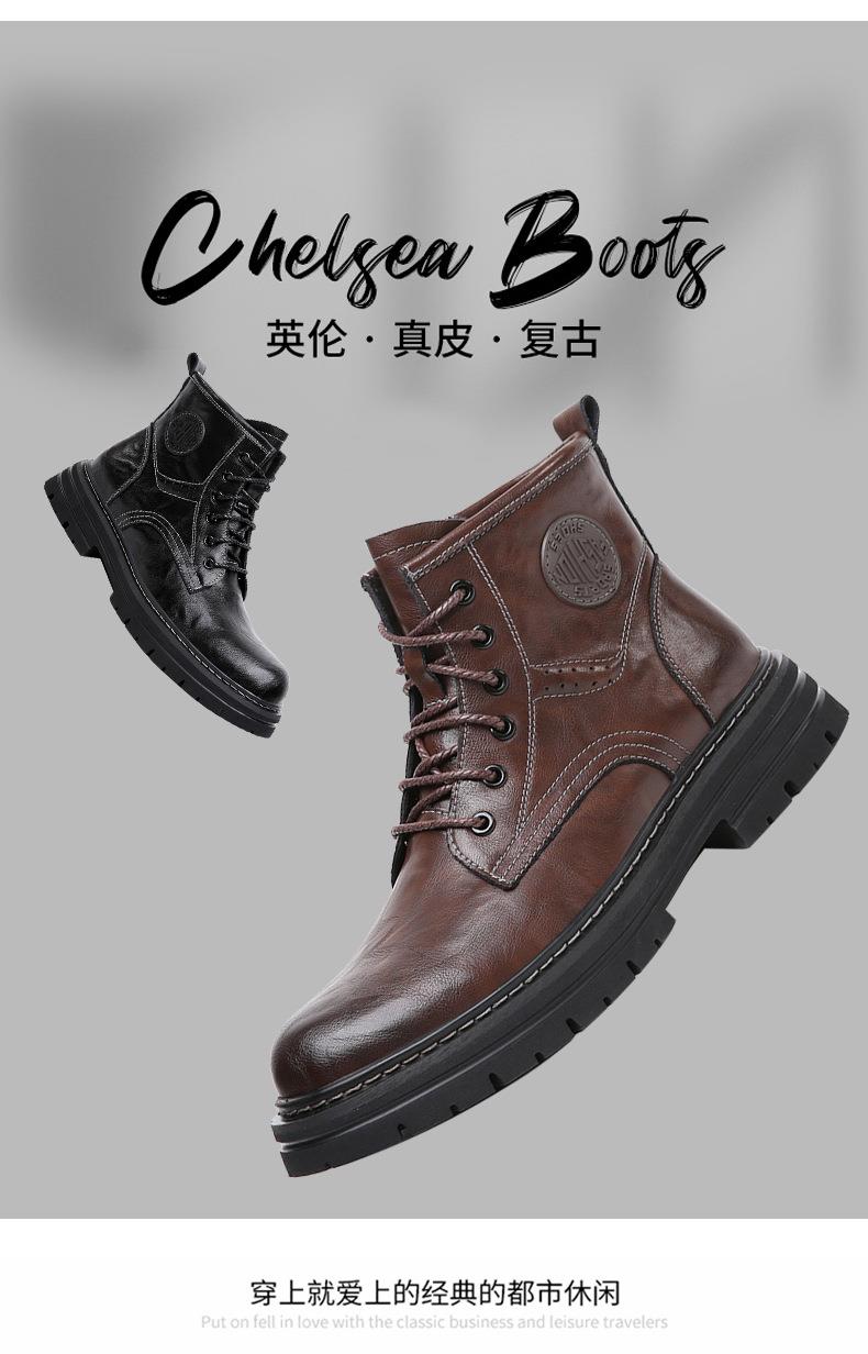 2025秋冬季新款马丁靴男真皮潮流英伦工装靴加绒保暖复古沙漠靴子