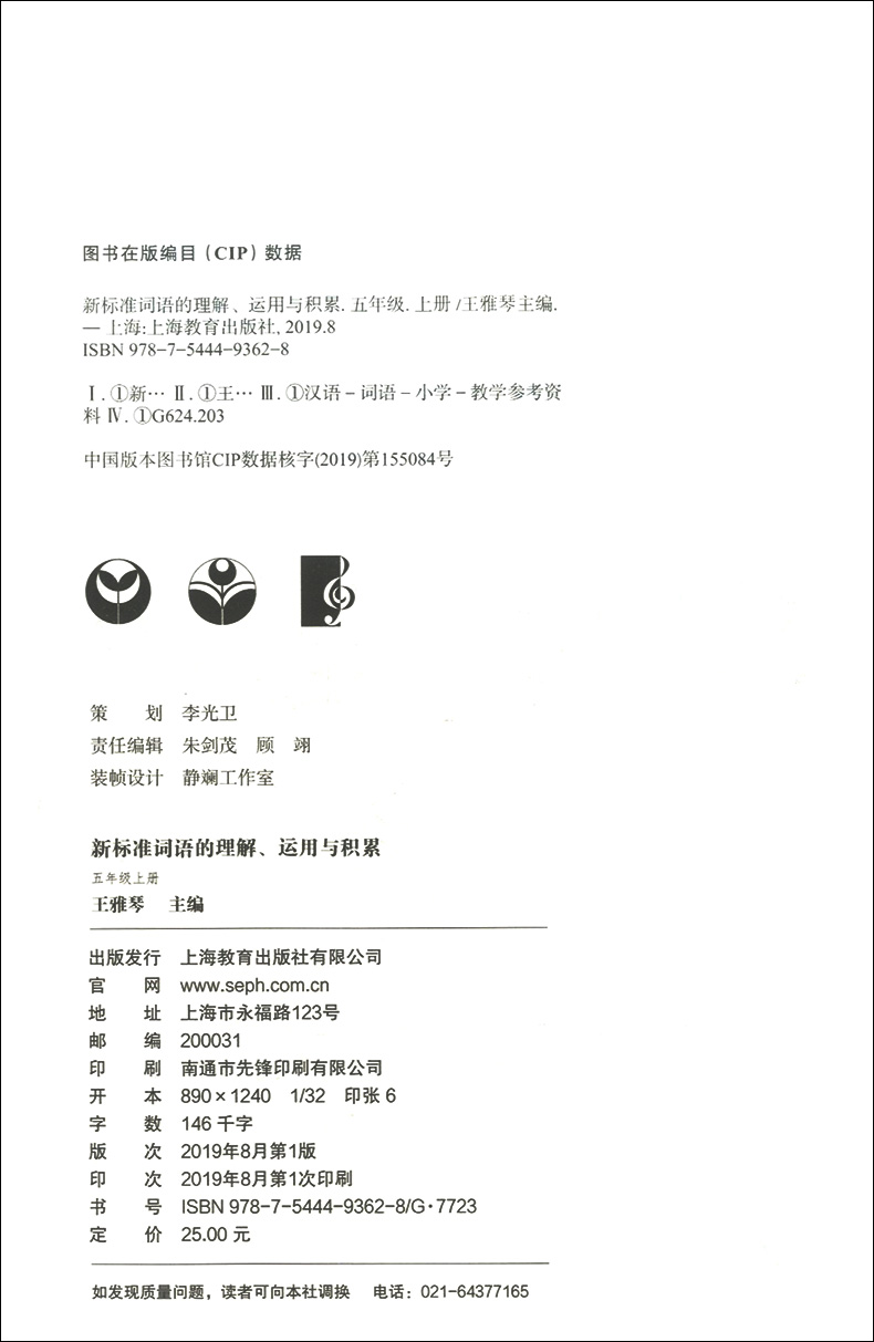 部编版 新标准词语的理解运用与积累 5年级上册/五年级第一学期 语文 与统编本新教材配套使用 上海小学教材教辅 上海教育出版社