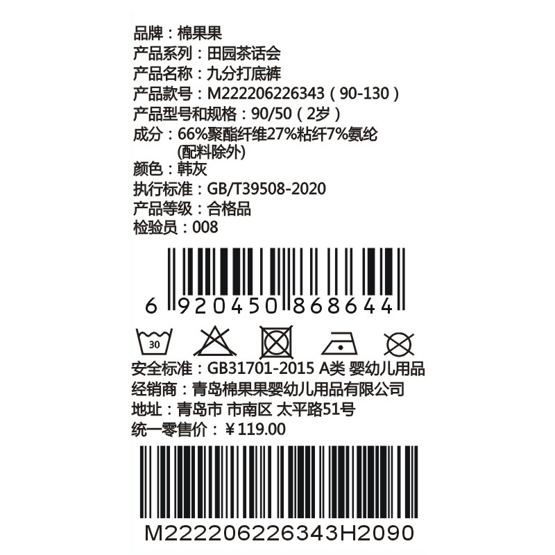 | 裤长 | 49 | 54.5 | 60 | 66 | 72 |