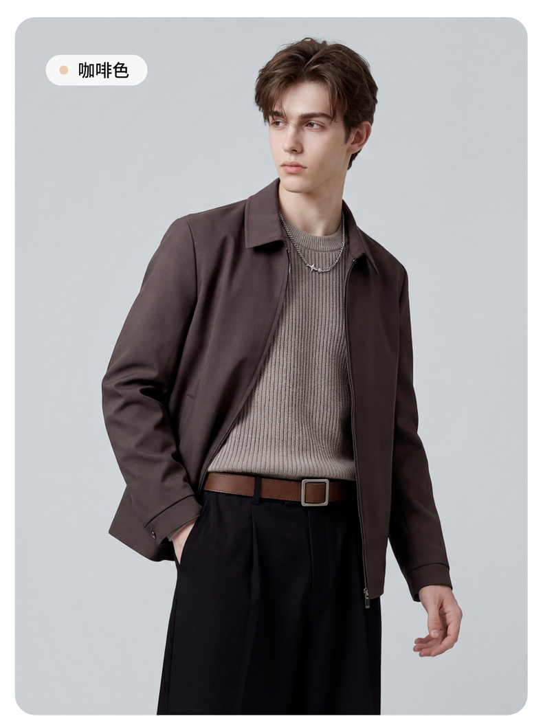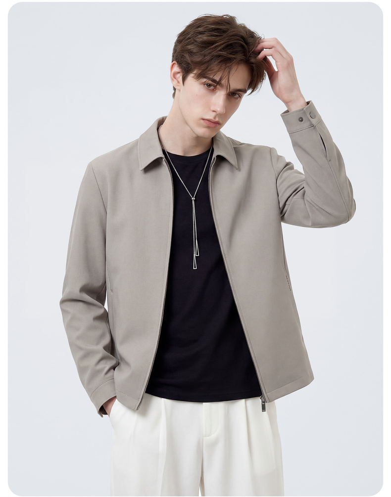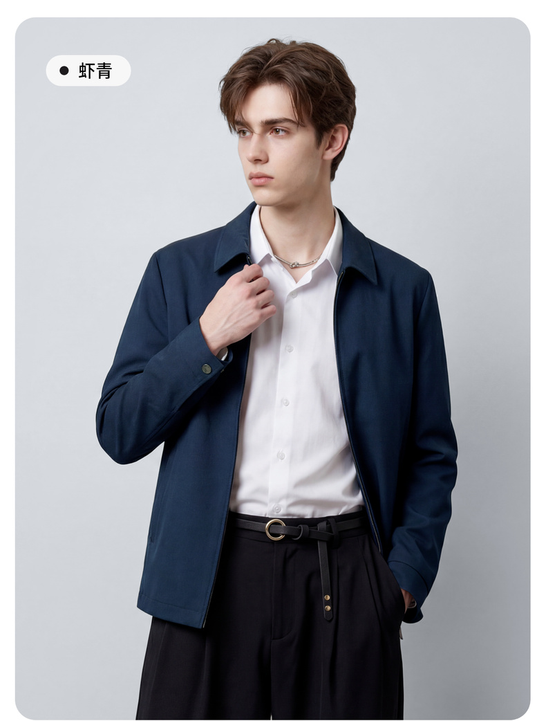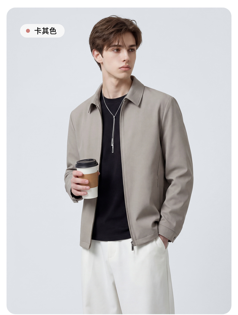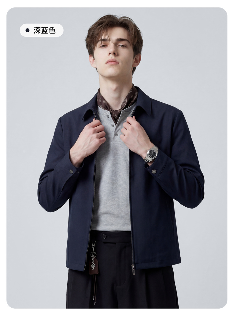 圣得西男士纯色简约夹克2025春秋新款宽松休闲百搭翻领外套青年