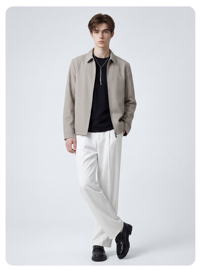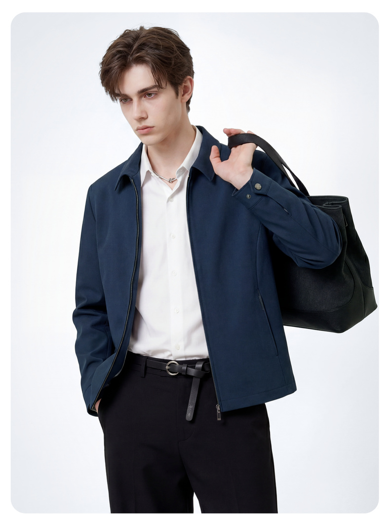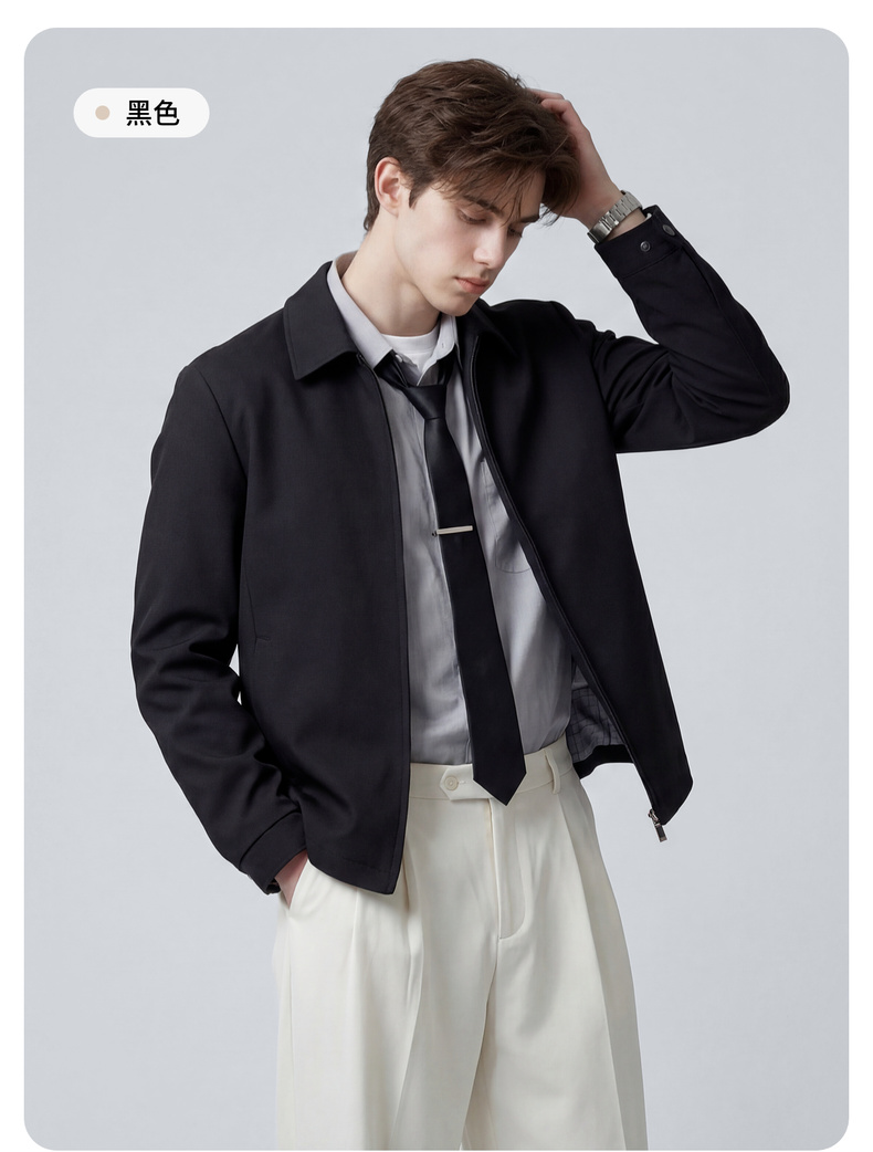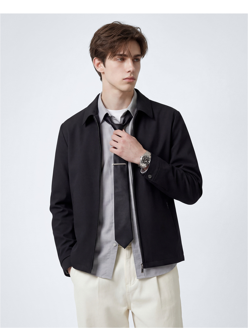 圣得西男士纯色简约夹克2025春秋新款宽松休闲百搭翻领外套青年