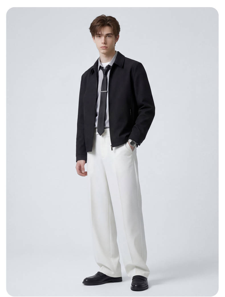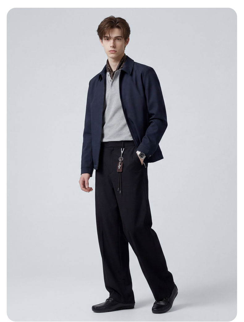 圣得西直筒休闲裤男2025新款纯色设计感弹力垂顺西裤子