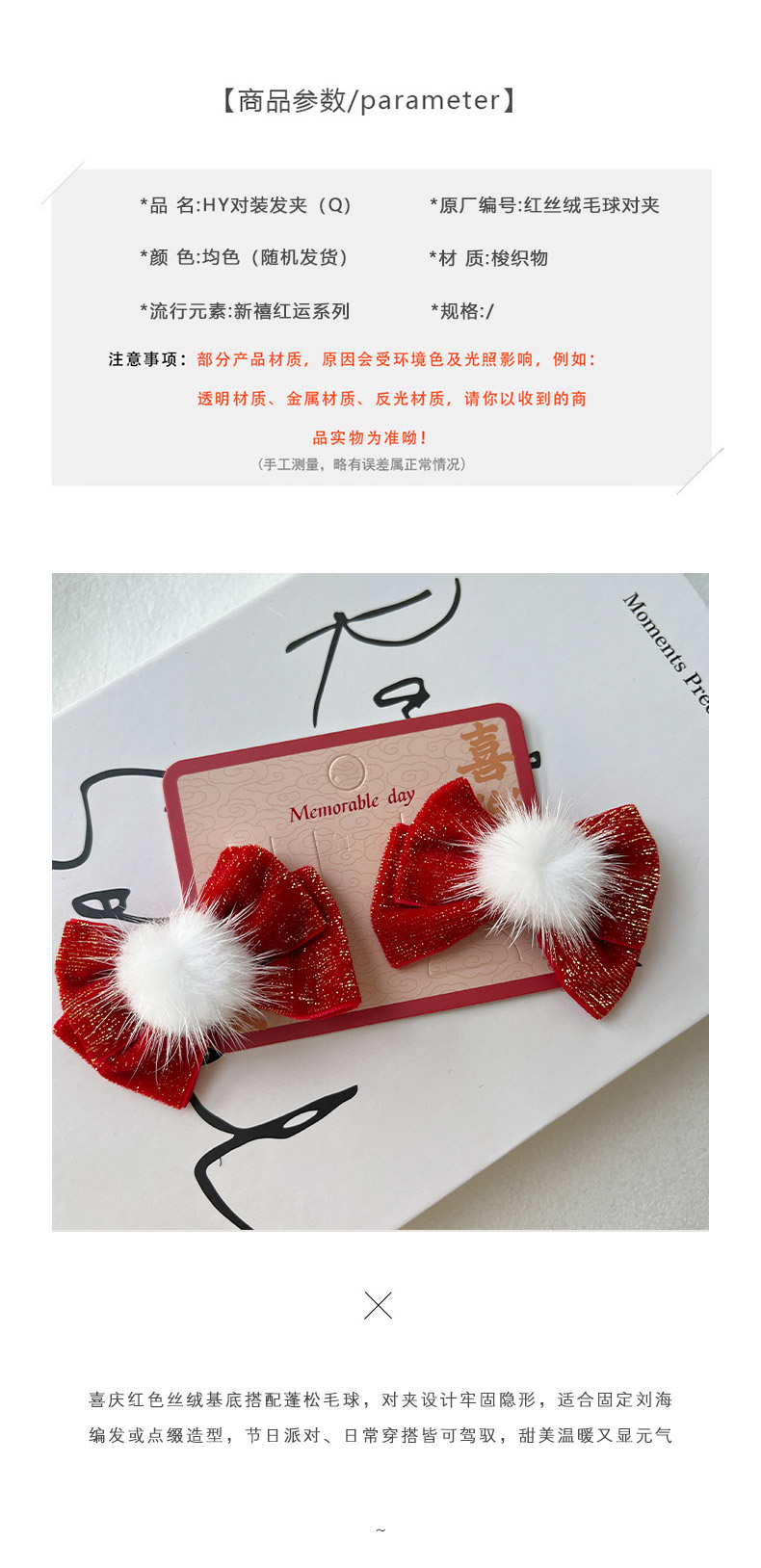 红丝绒毛球HY对装发夹-纪念日百货门店同款167795298