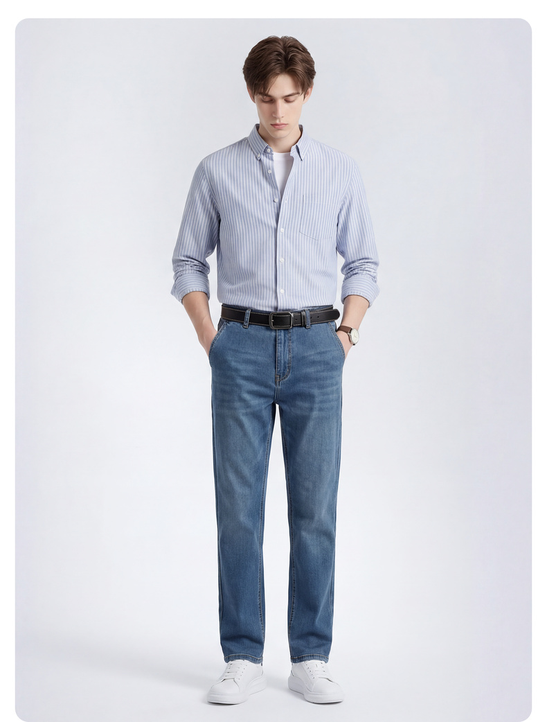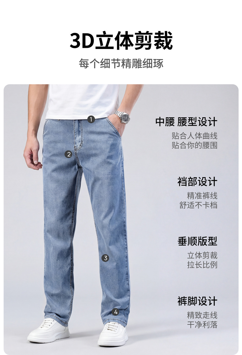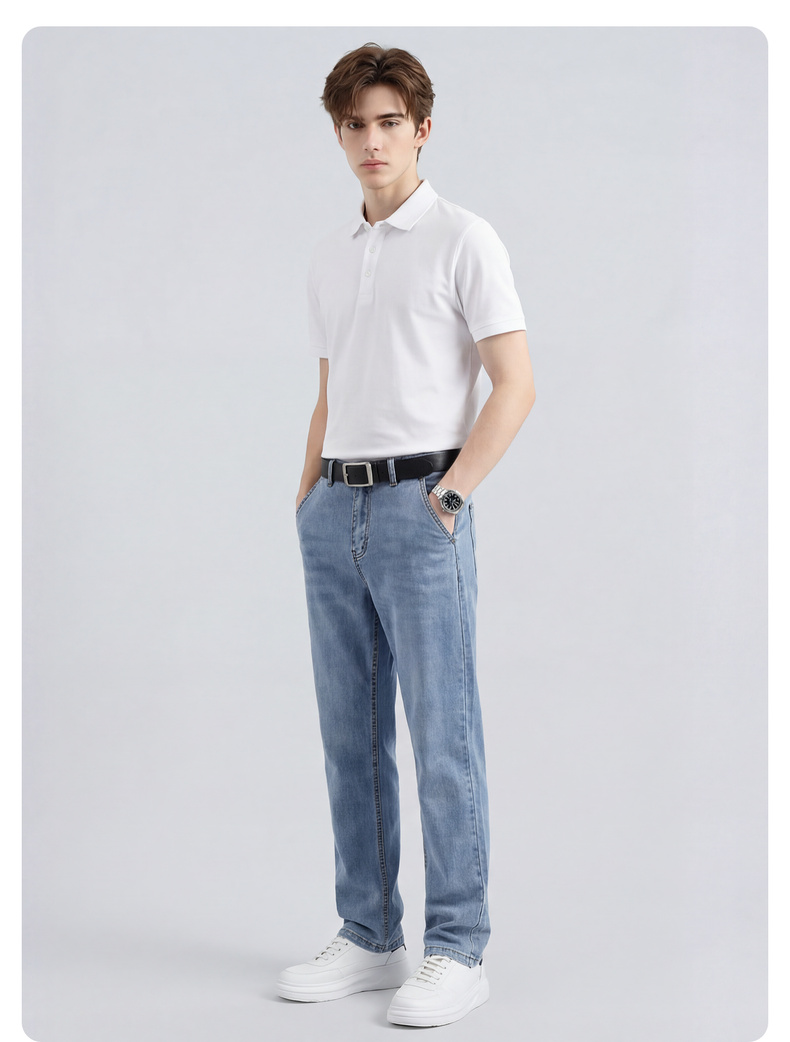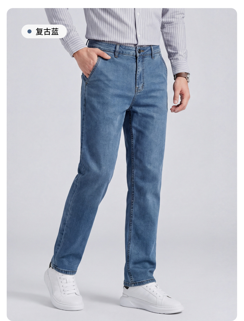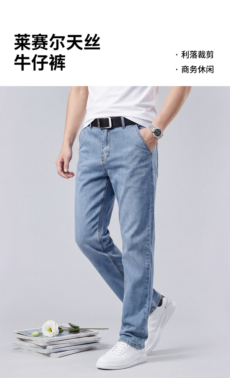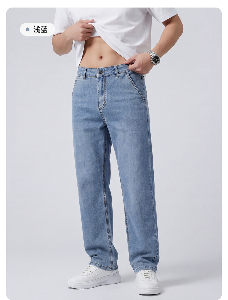 【含天丝】圣得西男士牛仔裤2026年春季新款中青年宽松薄款长裤