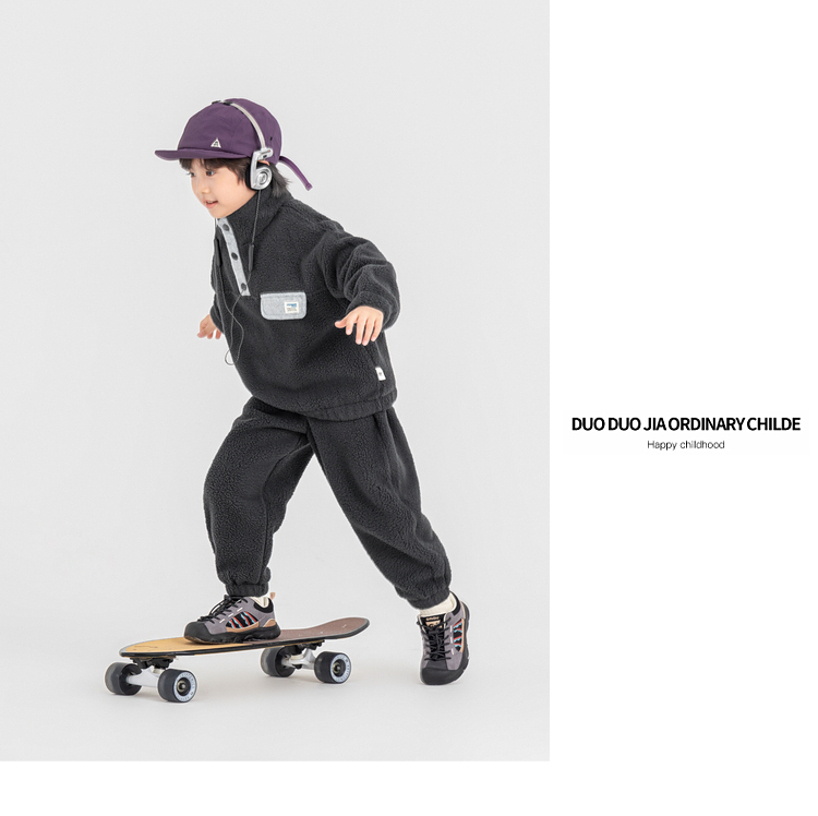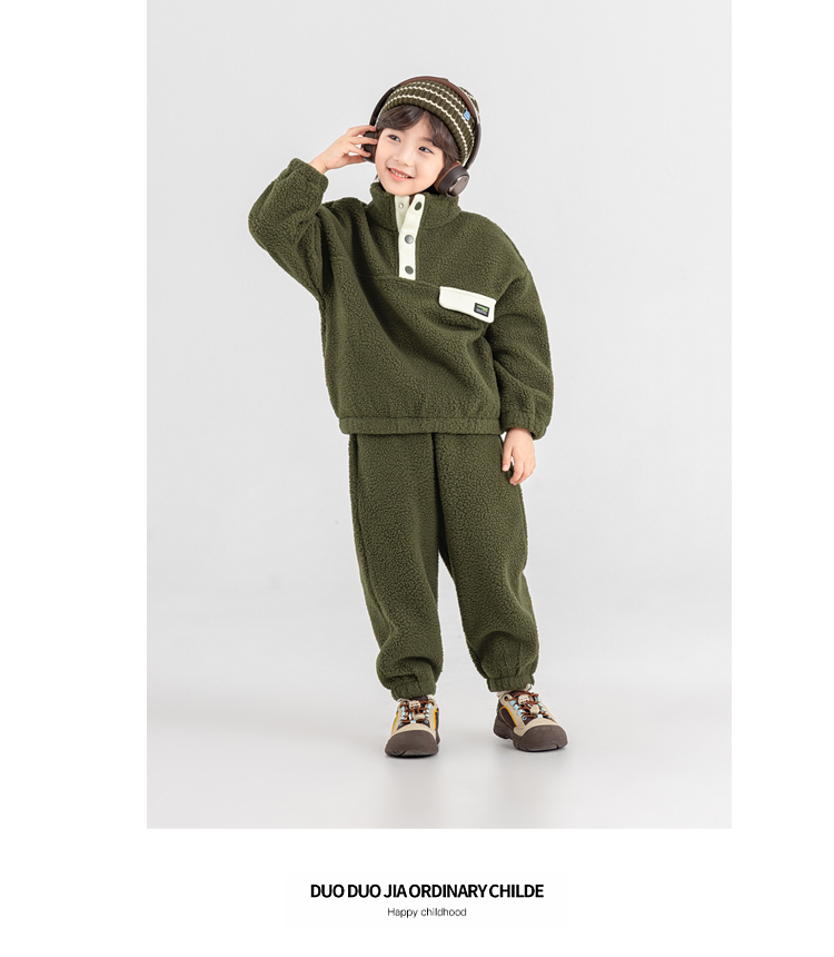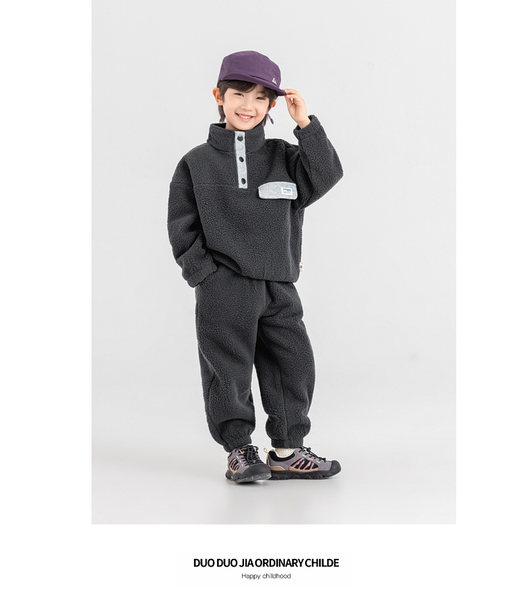 多多家男童摇粒绒套装2025冬装新款秋冬季儿童中大童洋气两件套