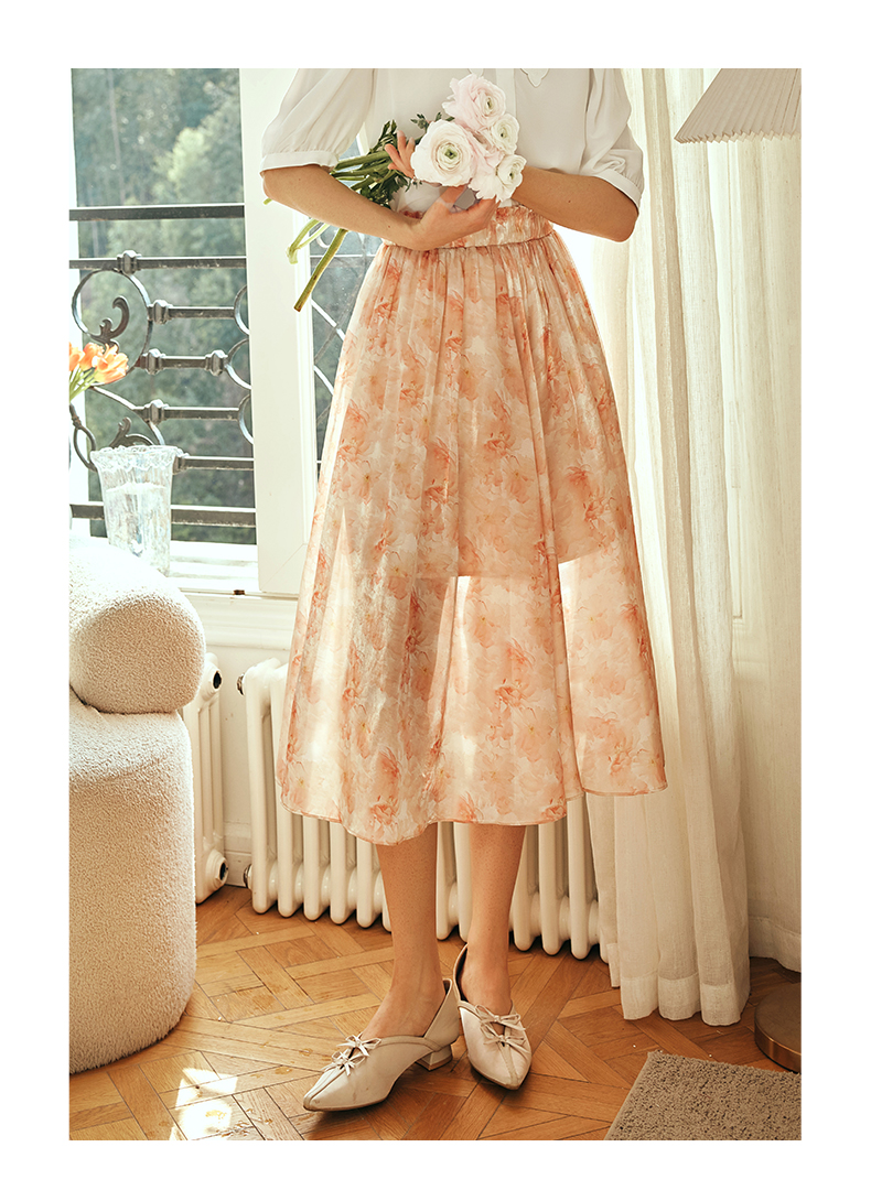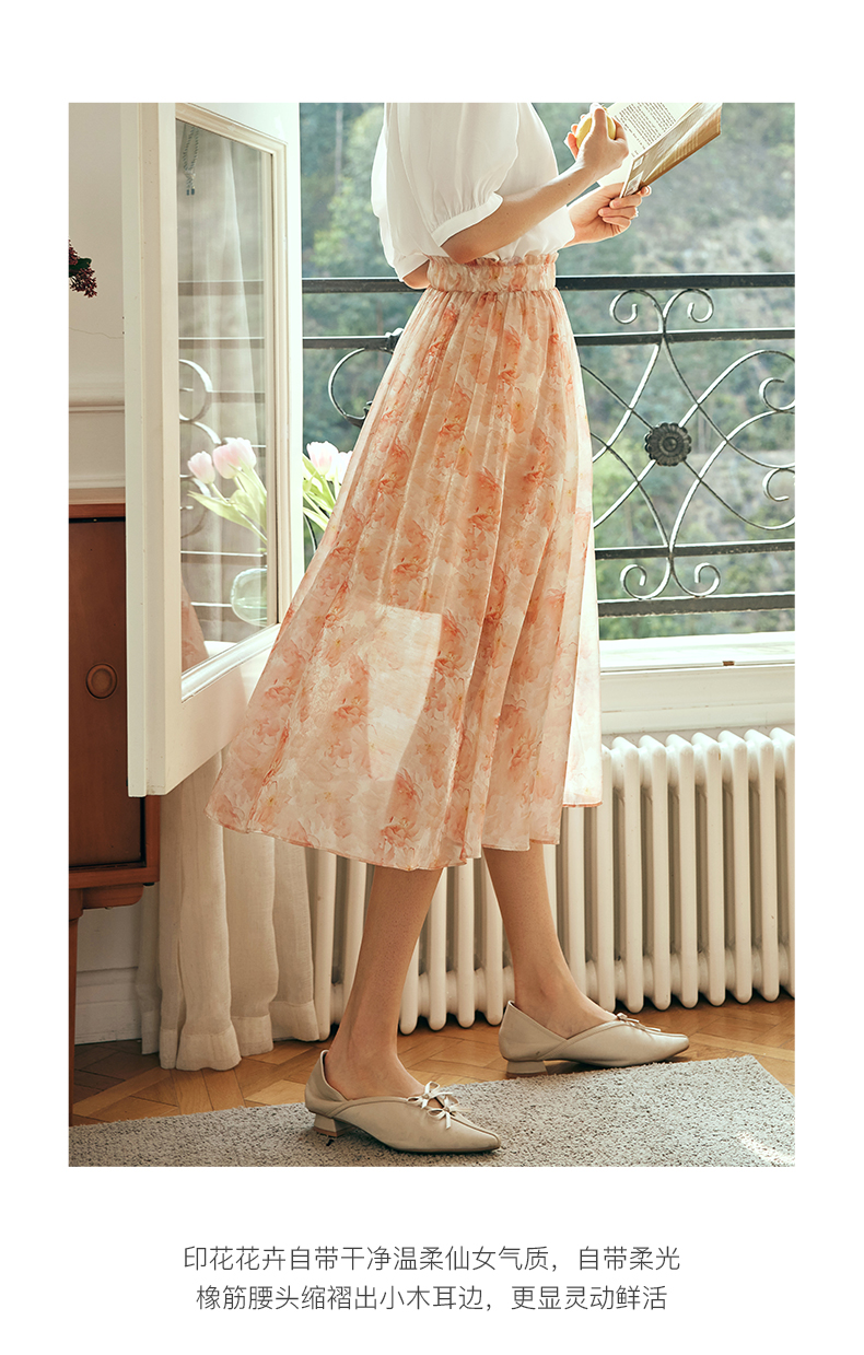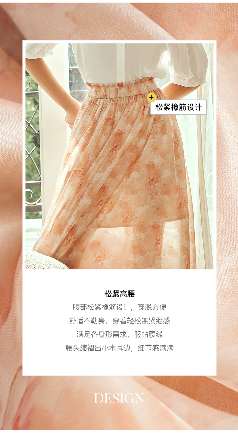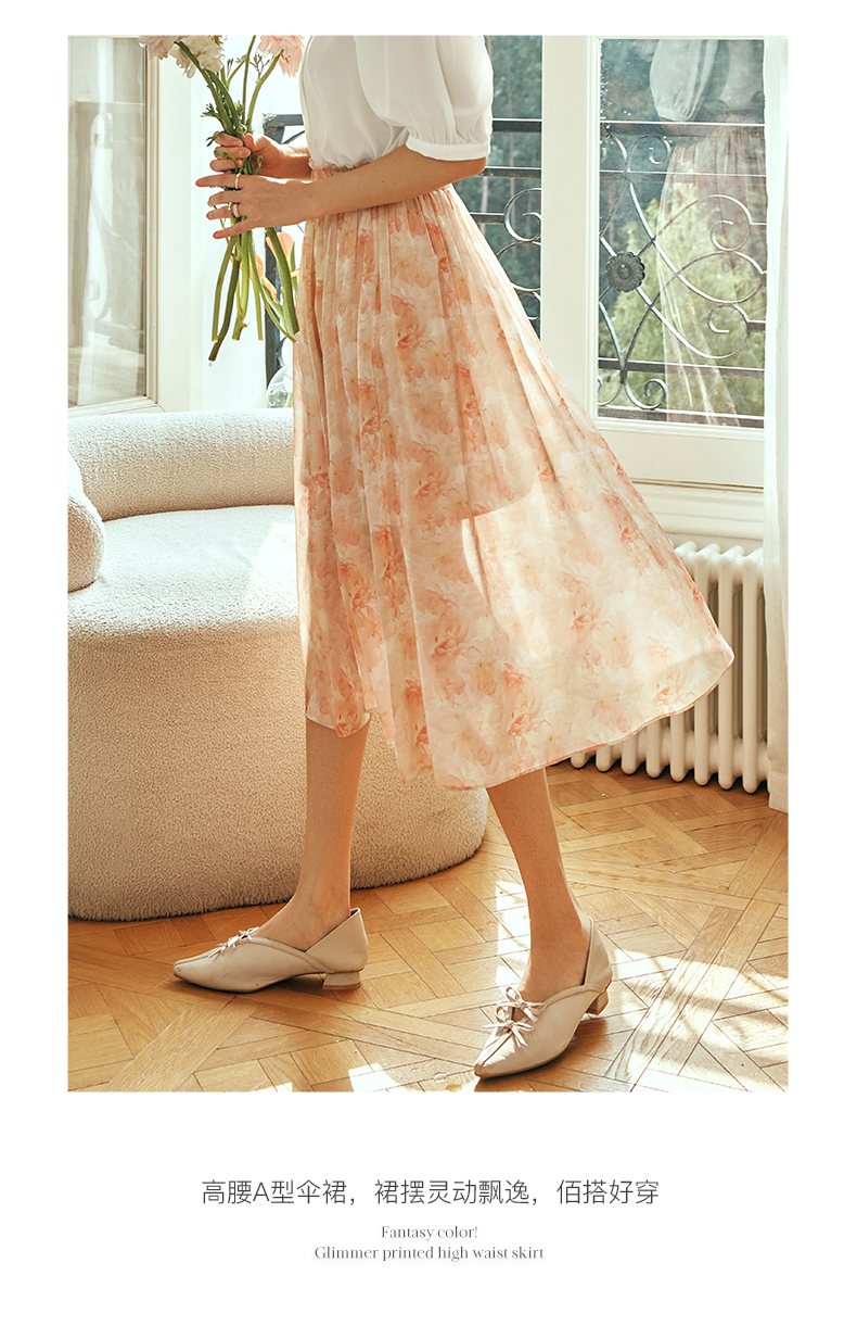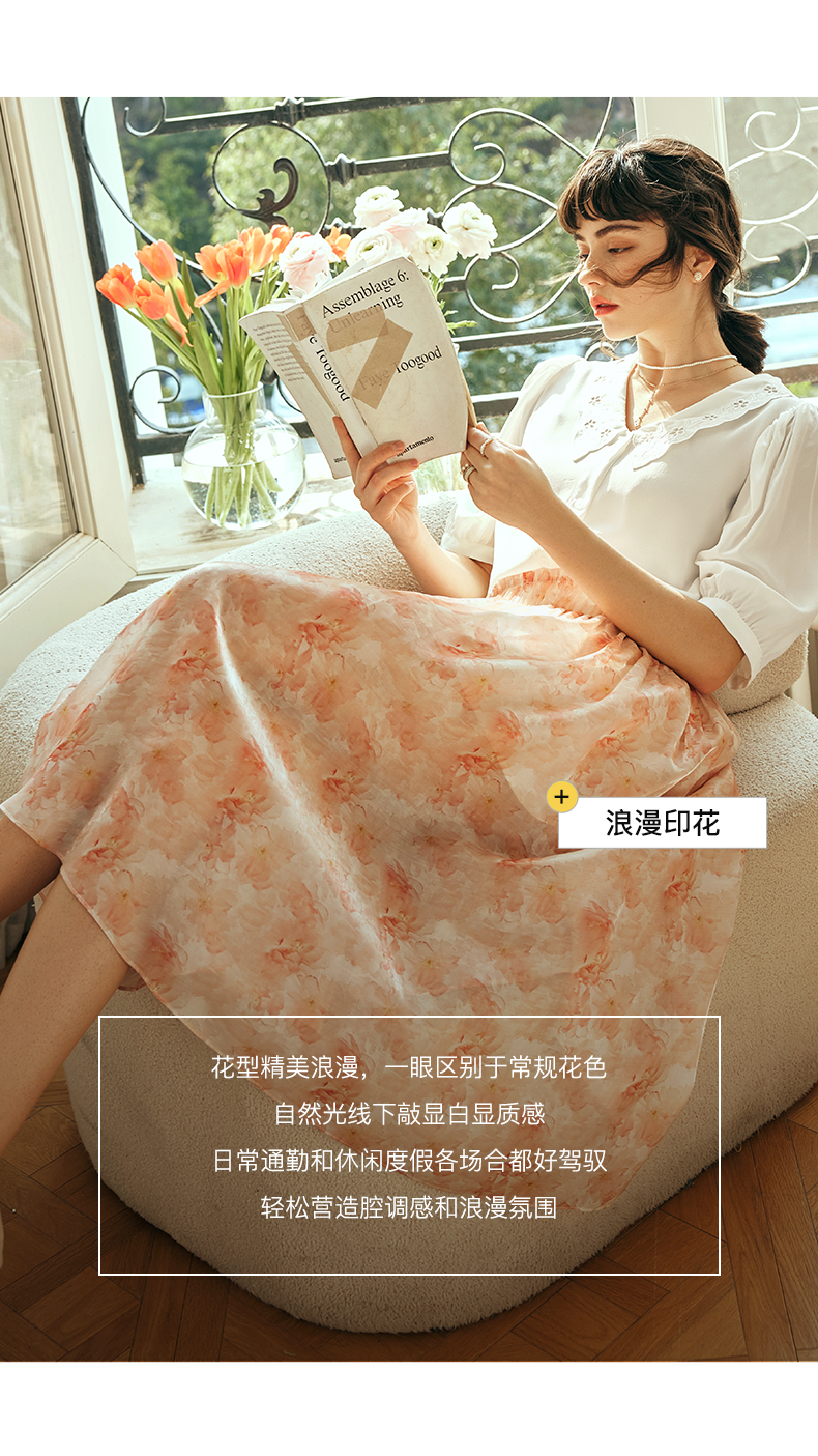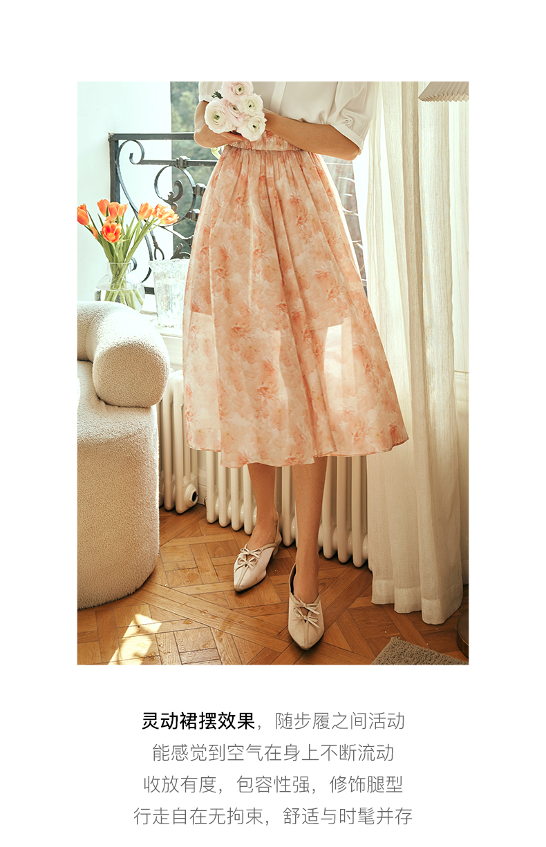 OLrain欧芮儿法式印花半身裙女夏季2023年新款高腰温柔风薄款摆裙