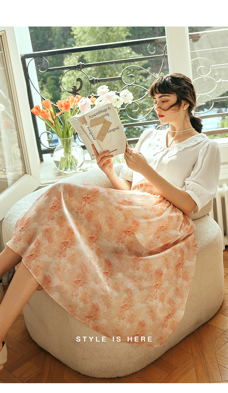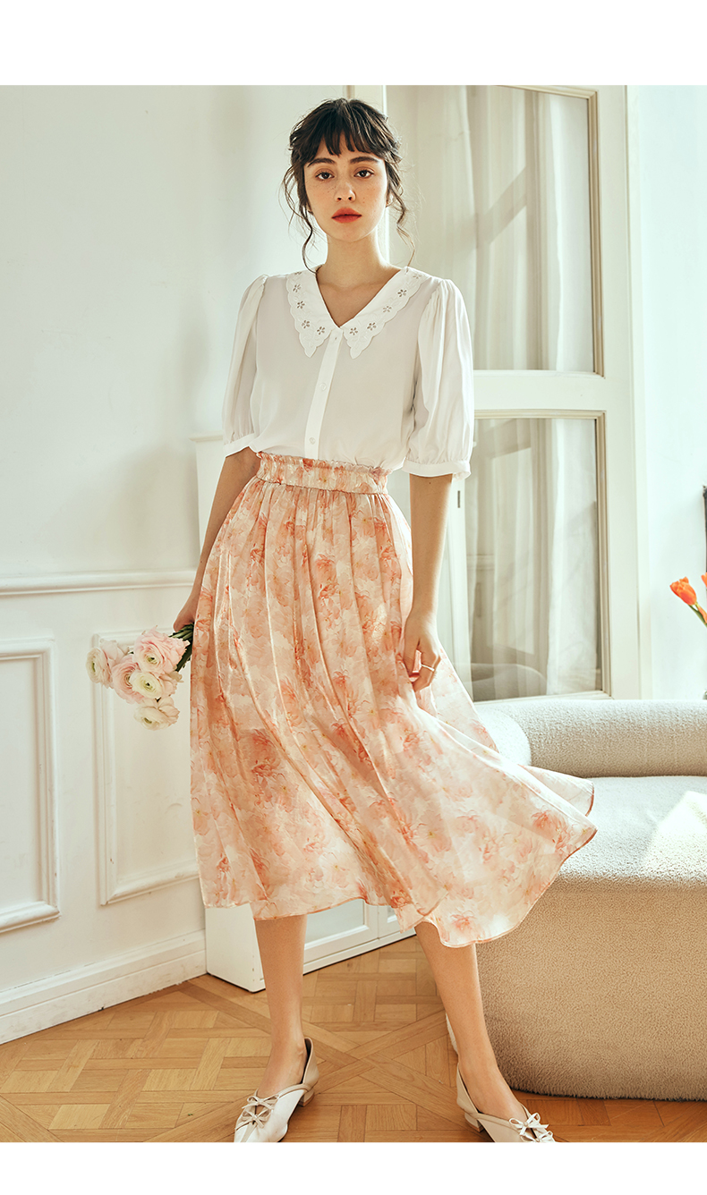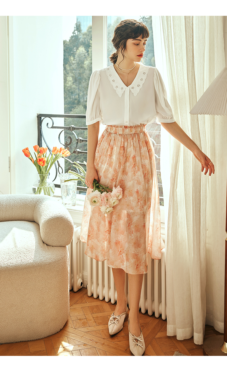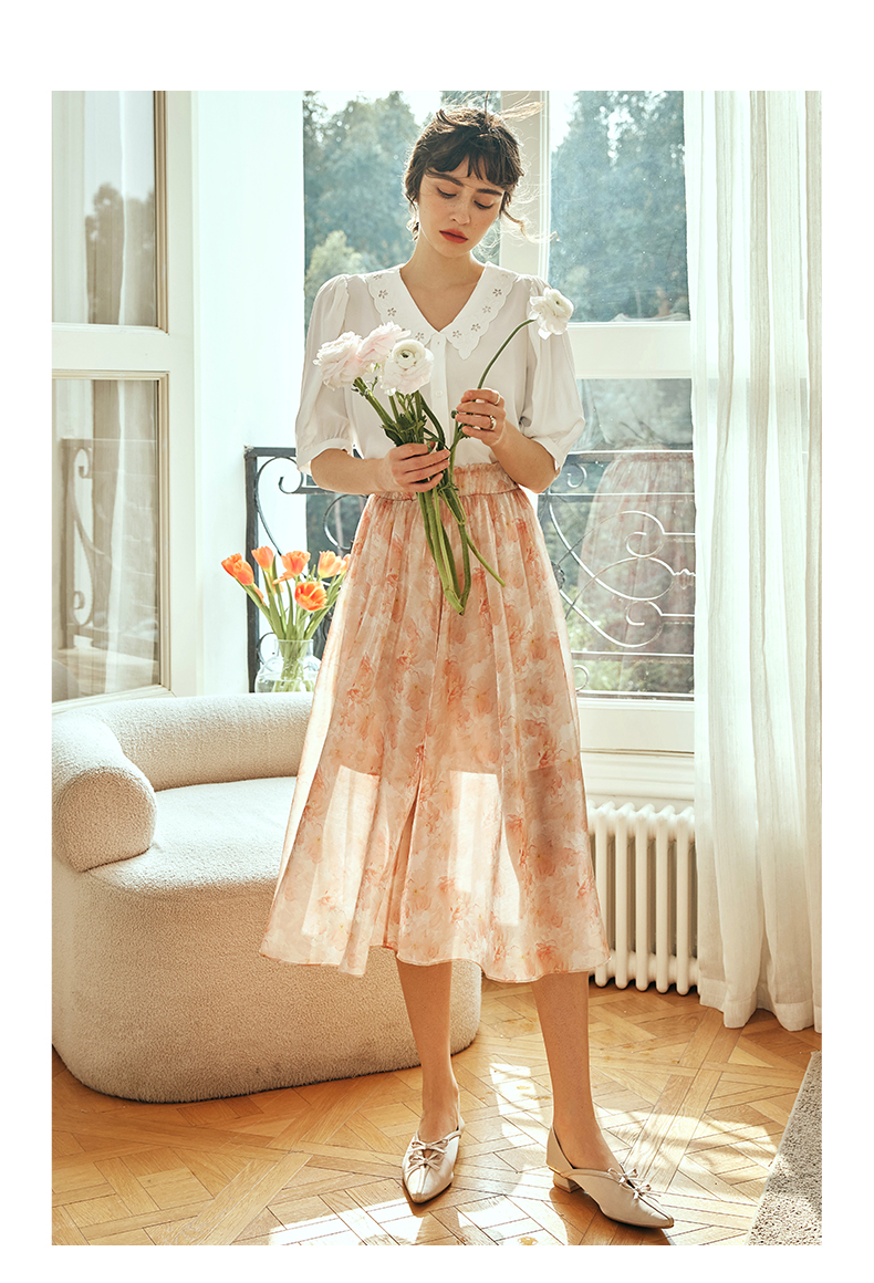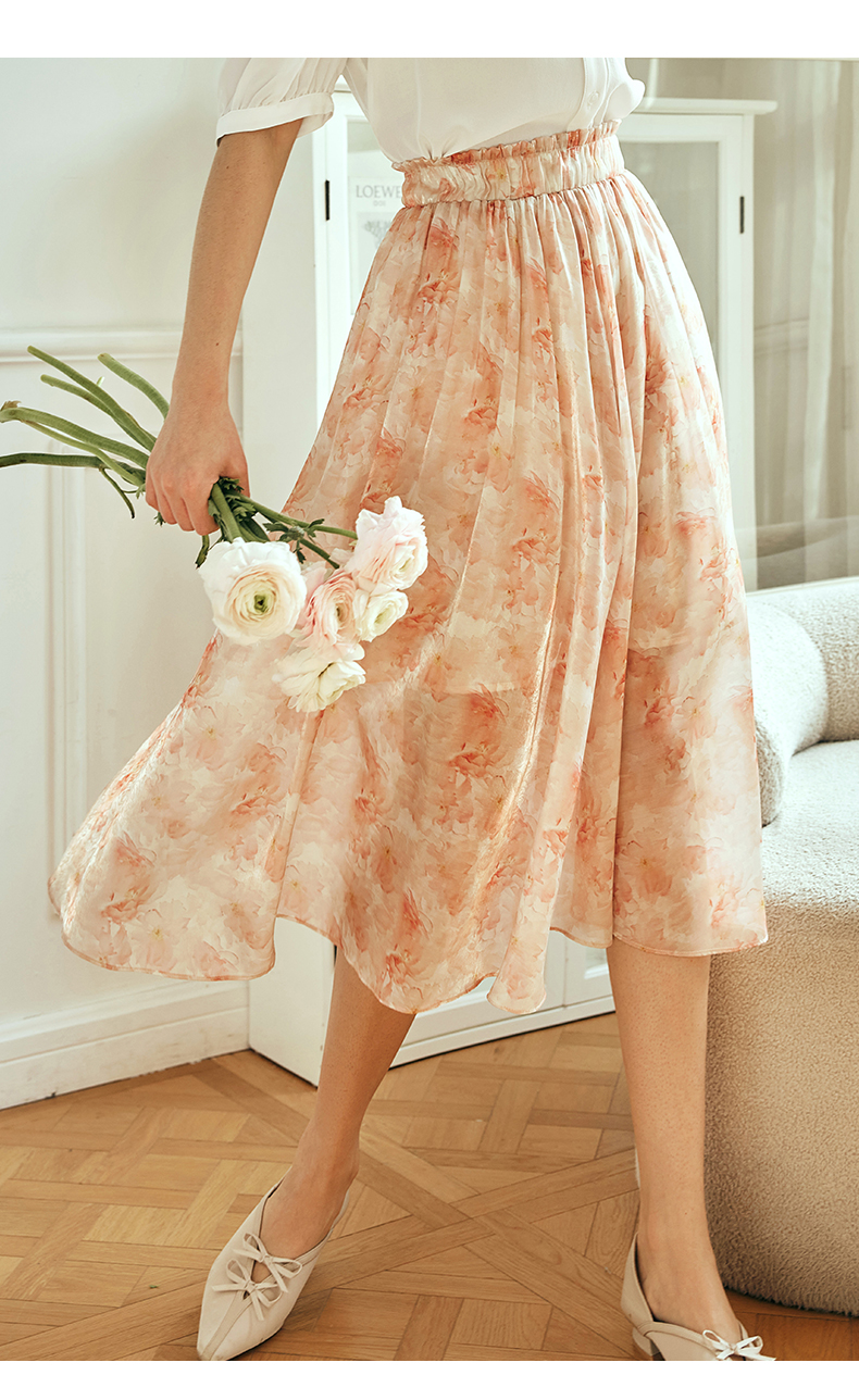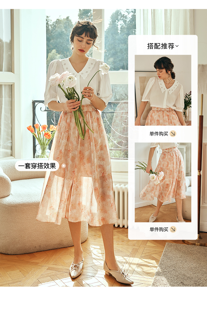 OLrain欧芮儿法式印花半身裙女夏季2023年新款高腰温柔风薄款摆裙