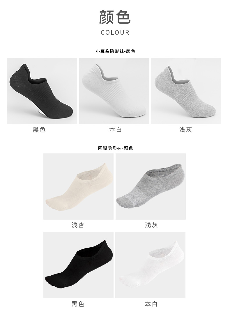 5双58.5元 春秋男士浅口短袜抗菌防臭棉袜薄款网眼隐形男袜